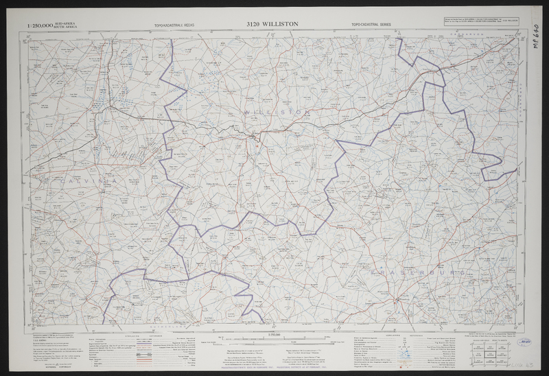 Trigonometrical Survey (South Africa), “3120 Williston, Williston 3120, Topo-cadastral series, Topo-kadastrale reeks”, Government Printer, Cory Library and Historical Archives, accessed 28 December 2025, https://digitalarchives.ru.ac.za/s/cory/item/10652