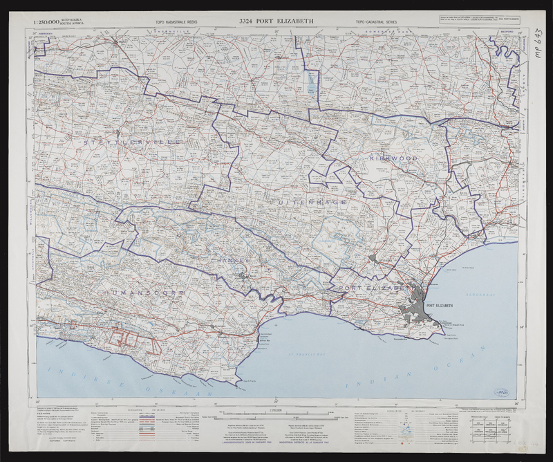 Trigonometrical Survey (South Africa), “3324 Port Elizabeth, Port Elizabeth 3324, Topo-cadastral series, Topo-kadastrale reeks”, Government Printer, Cory Library and Historical Archives, accessed 29 December 2025, https://digitalarchives.ru.ac.za/s/cory/item/10656