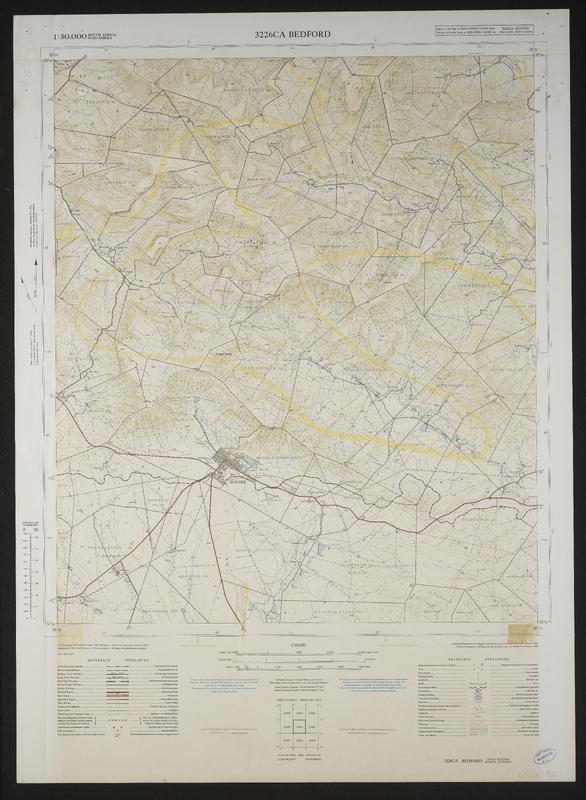 - 3226CA Bedford, Suid Afrika 1:50000 vel. Lugfotografie 1949 and 1950. Opgemeet 1965 en geteken in 1966 deur die Driehoeksmeting Kantoor. T.S.O. 200/2573.