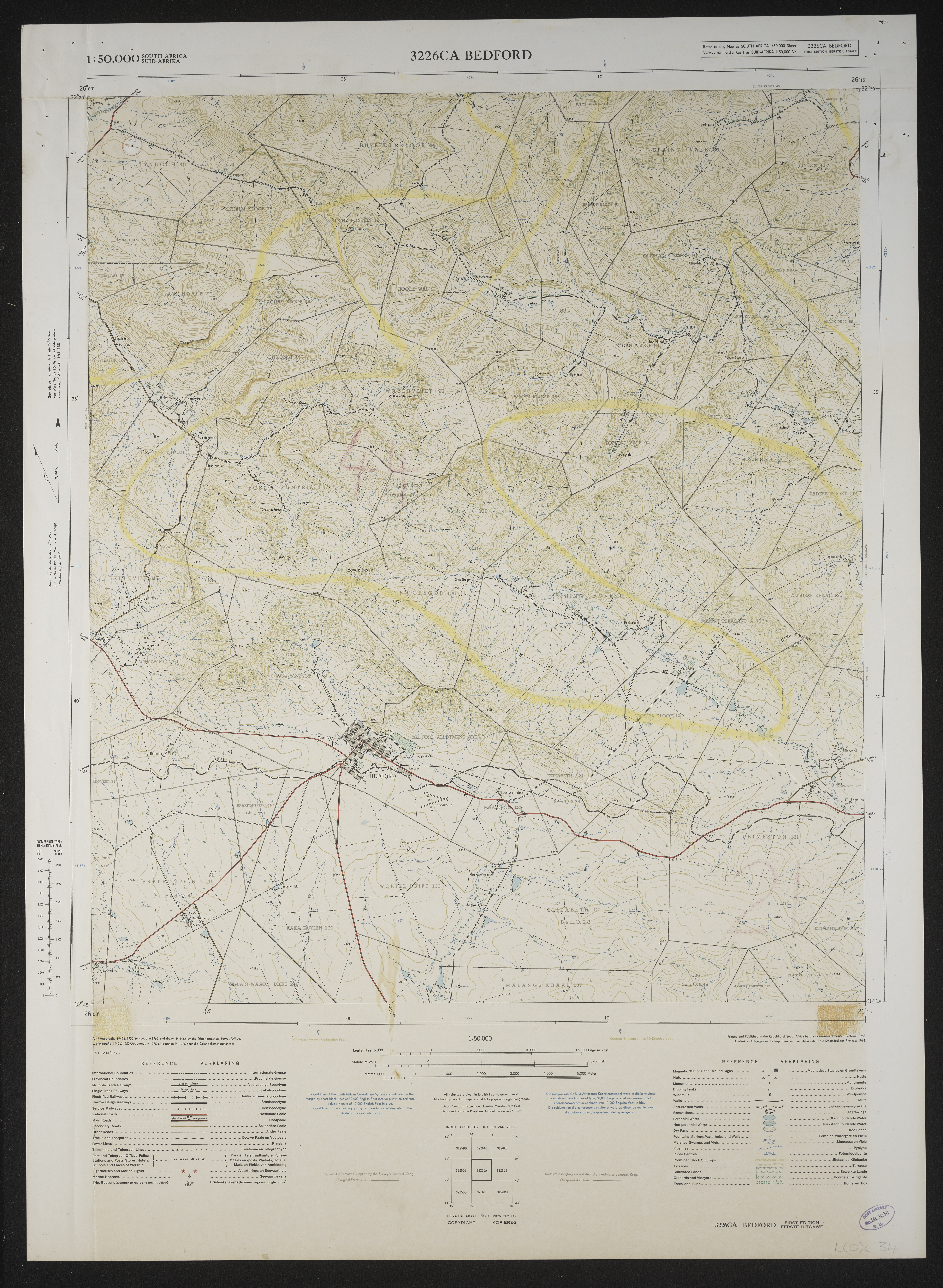Trigonometrical Survey (South Africa), “3226CA Bedford, South Africa 1:50000 sheet”, Government Printer, 1940-1950, Cory Library and Historical Archives, accessed 28 December 2025, https://digitalarchives.ru.ac.za/s/cory/item/10674
