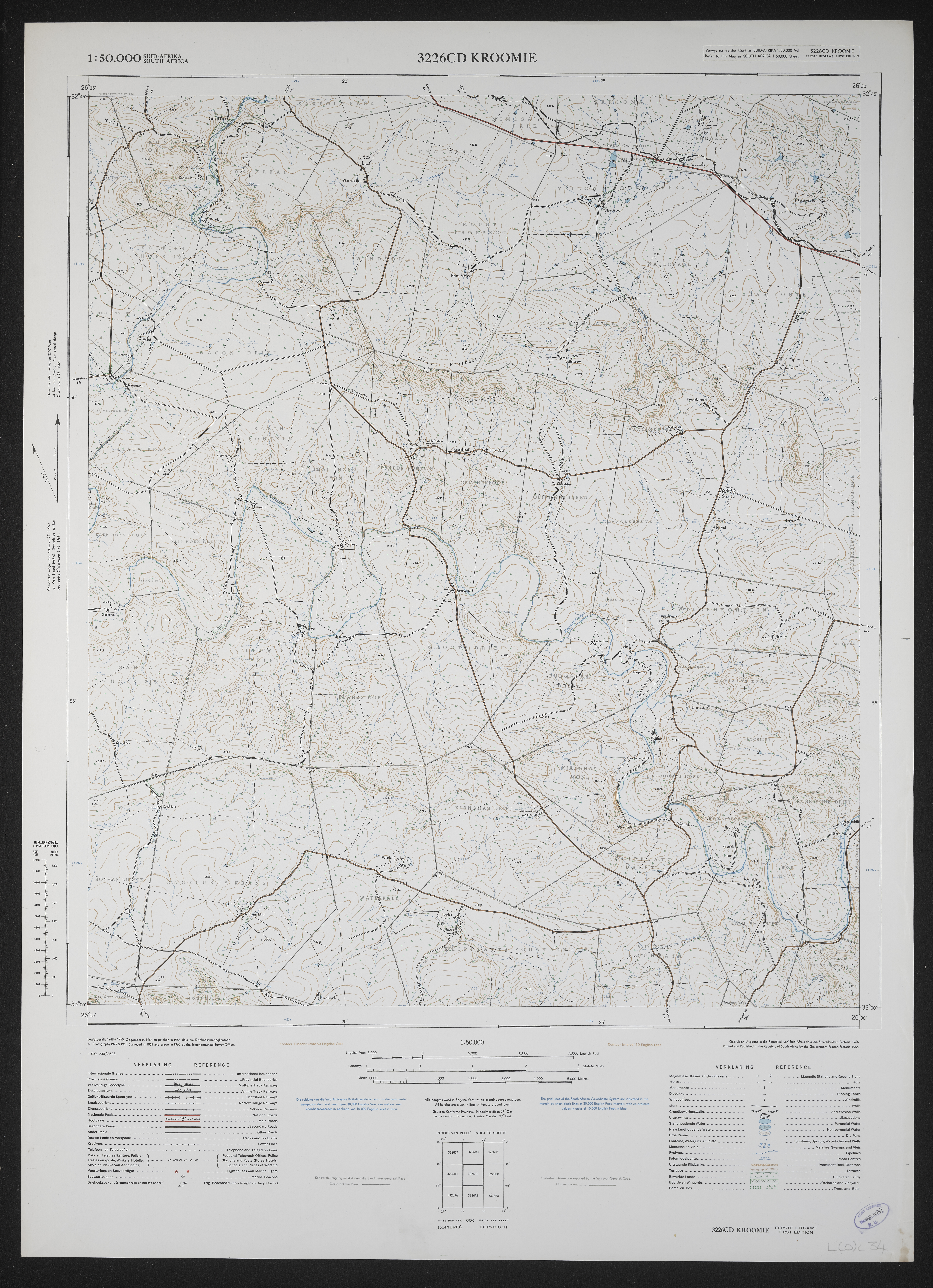 Trigonometrical Survey (South Africa), “3226CD Kroomie, Kroomie 3226CD, South Africa 1:50000 sheet, Suid Afrika 1:50000 vel”, Government Printer, Cory Library and Historical Archives, accessed 28 December 2025, https://digitalarchives.ru.ac.za/s/cory/item/10678