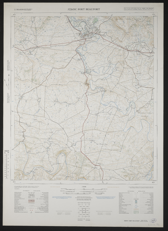 South Africa. Surveyor General, “Fort Beaufort 3226DC, 3226DC Fort Beaufort, South Africa 1:50000 topo-cadastral sheet, Suid Afrika 1:50000 topo-kadastrale vel”, Government Printer, Cory Library and Historical Archives, accessed 29 December 2025, https://digitalarchives.ru.ac.za/s/cory/item/10684