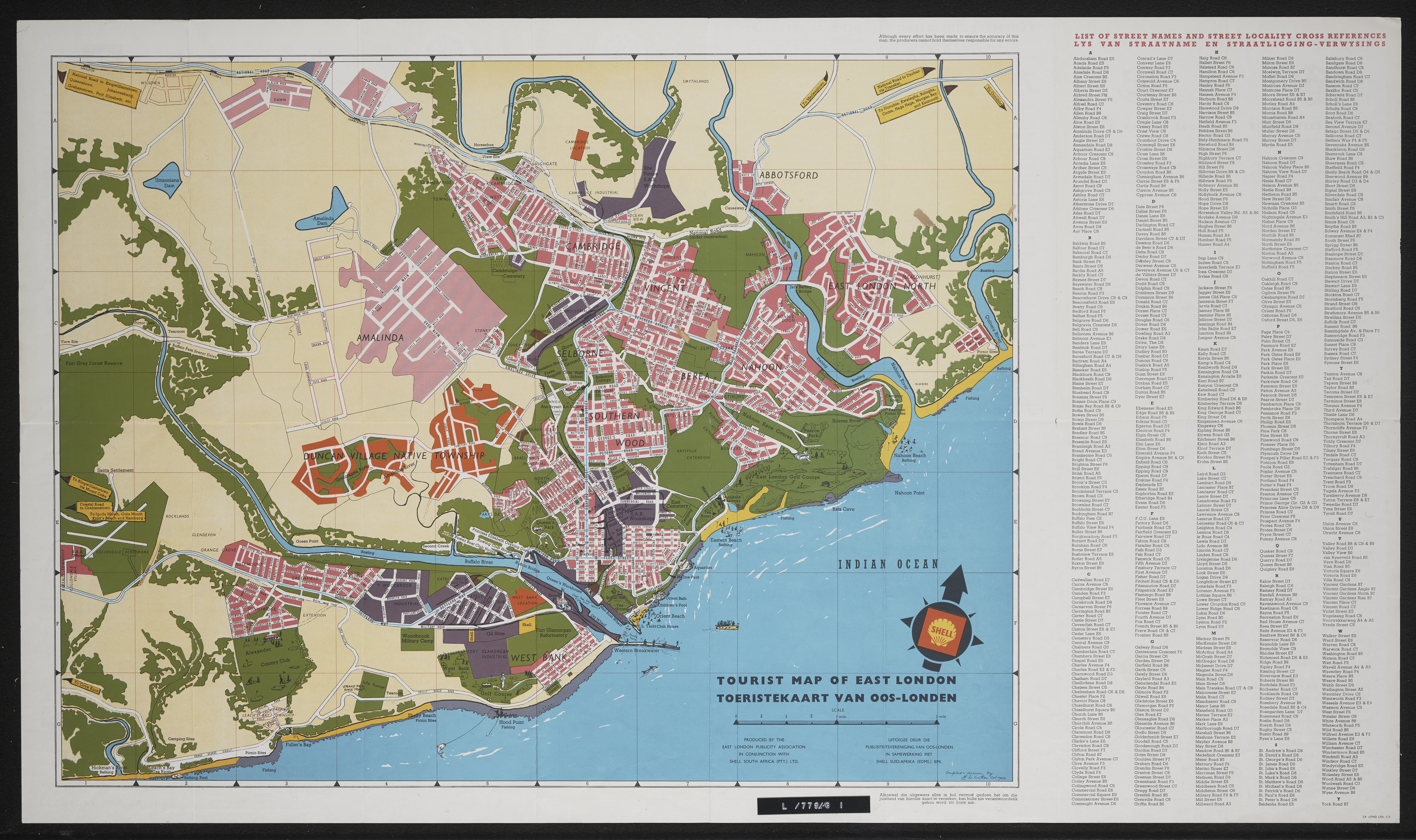 - Tourist map of East London showing places of interest. Produced by the East London Publicity Association in conjunction with Shell South Africa (Pty) Limited. Compiled and drawn by B. L. Walton, October 1955.