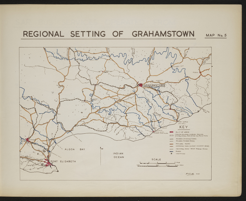- Map 5 in the map album accompanying the thesis by Hilstan Lett Watts, "Grahamstown : a socio-ecological study of a small South African town", Rhodes University thesis, 1957. Map signed 1955.