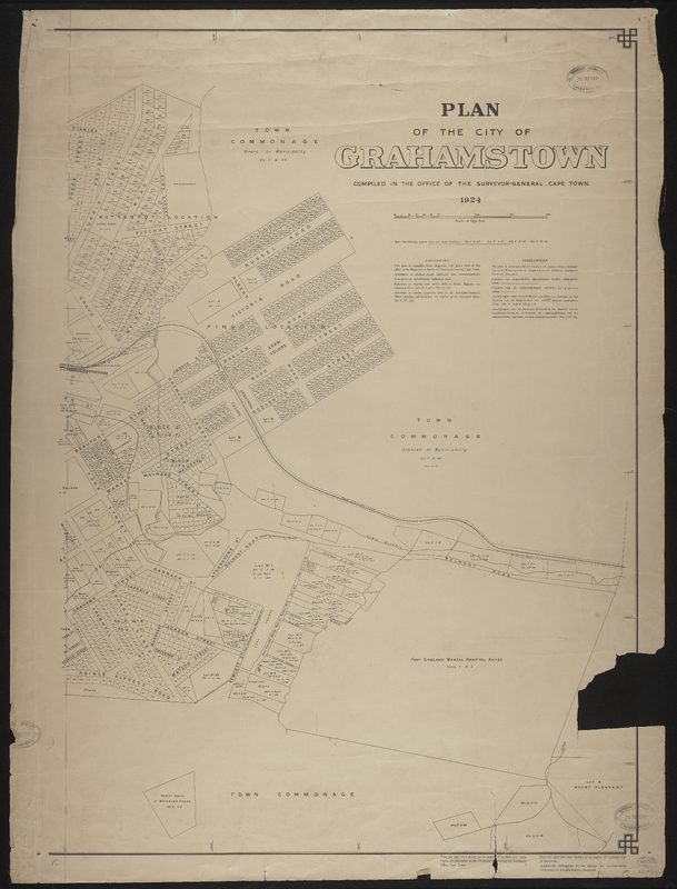 - Plan of the City of Grahamstown, 1924 compiled in the Office of the Surveyor General, Cape Town. Compiled from plans and diagrams filed in the office of the Registrar of Deeds and Surveyor General Cape Town.