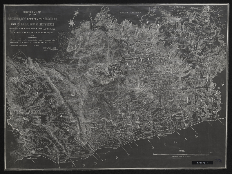 “Sketch map of the country between the Kowie and the Chalumna Rivers showing the Fingo and Kafir locations, general lay of the country etc”, Cory Library and Historical Archives, accessed 29 December 2025, https://digitalarchives.ru.ac.za/s/cory/item/10807