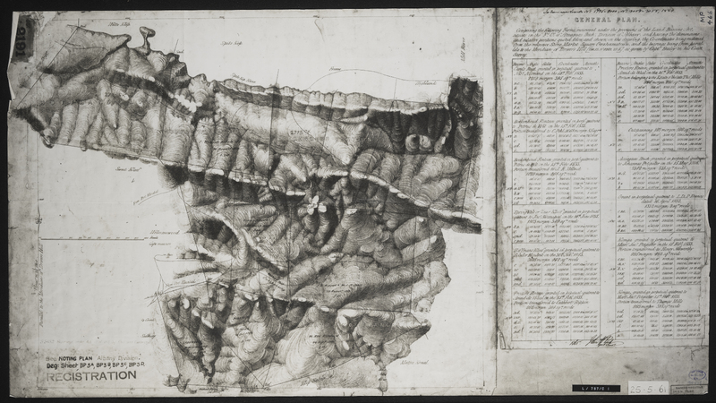Bailey, William, Captain, “General plan : comprising the following farms, resurveyed under the provisions of the Land Beacons Act situate in the Fd. Cy. of Assegaai Bush, Division of Albany and having the dimensions and relative positions quoted below and shown in the drawing, the co-ordinates being reckoned from the Reference Stone Market Square, Grahamstown, and the bearings being from parallels to the meridian of Driver's Hill [127.56 N. 4262.22 E.] as given by Capt Bailey in his coast survey”, Cory Library and Historical Archives, accessed 29 December 2025, https://digitalarchives.ru.ac.za/s/cory/item/10831