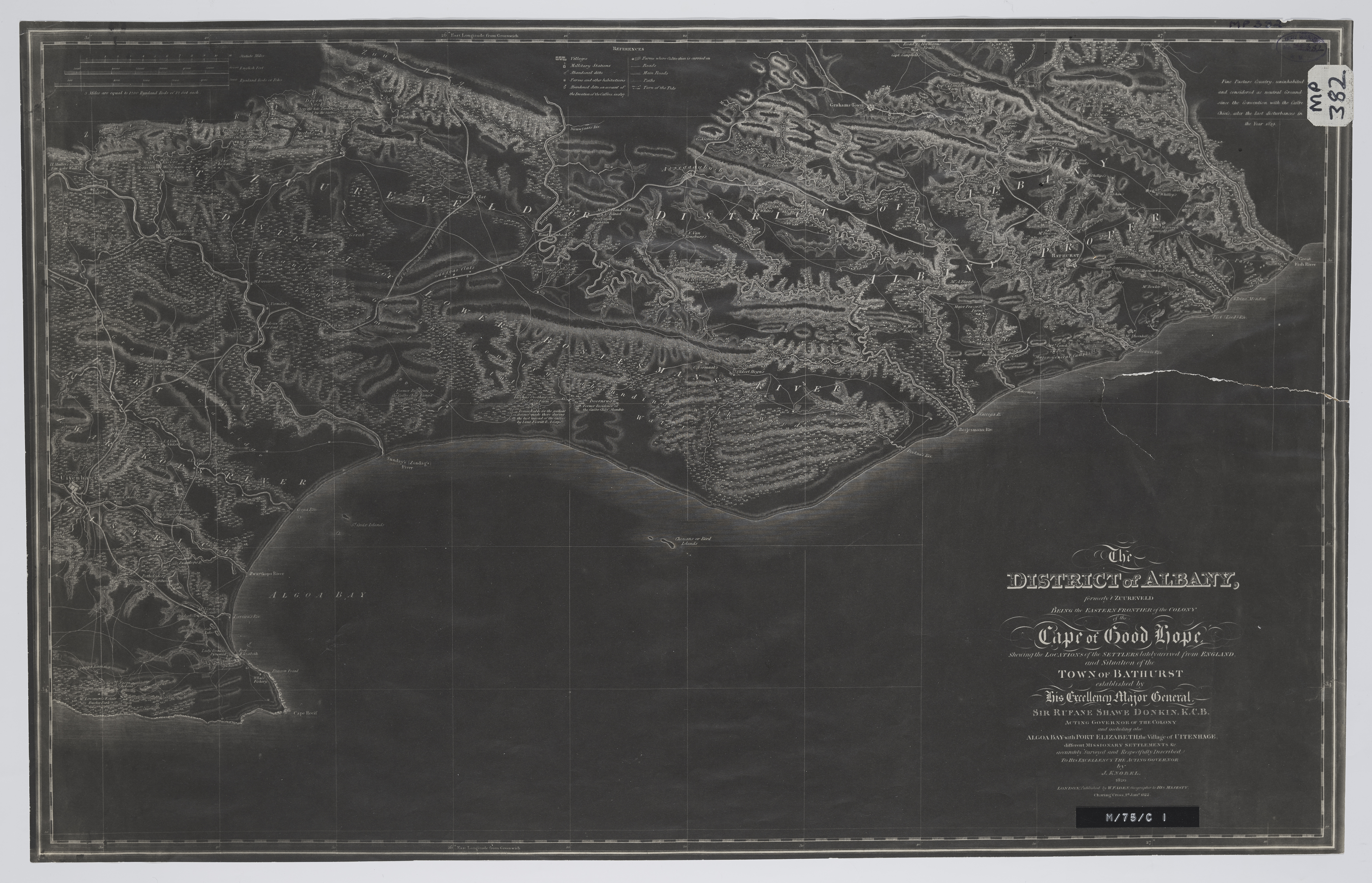 Knobel, J, “The district of Albany, formerly t'Zuureveld”, W. Faden, Cory Library and Historical Archives, accessed 28 December 2025, https://digitalarchives.ru.ac.za/s/cory/item/10835