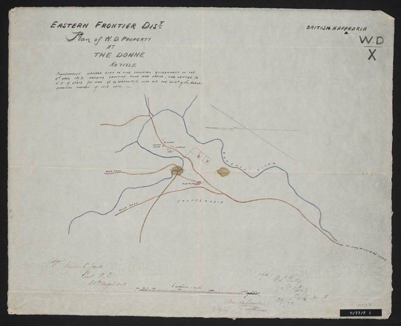 Great Britain. War Office,Jones, Walter P, “Eastern Frontier Dist. plan of W.D. property at the Dohne,Eastern Frontier District plan of War Department property at the Dohne”, Great Britain. War Office, Cory Library and Historical Archives, accessed 28 December 2025, https://digitalarchives.ru.ac.za/s/cory/item/10849