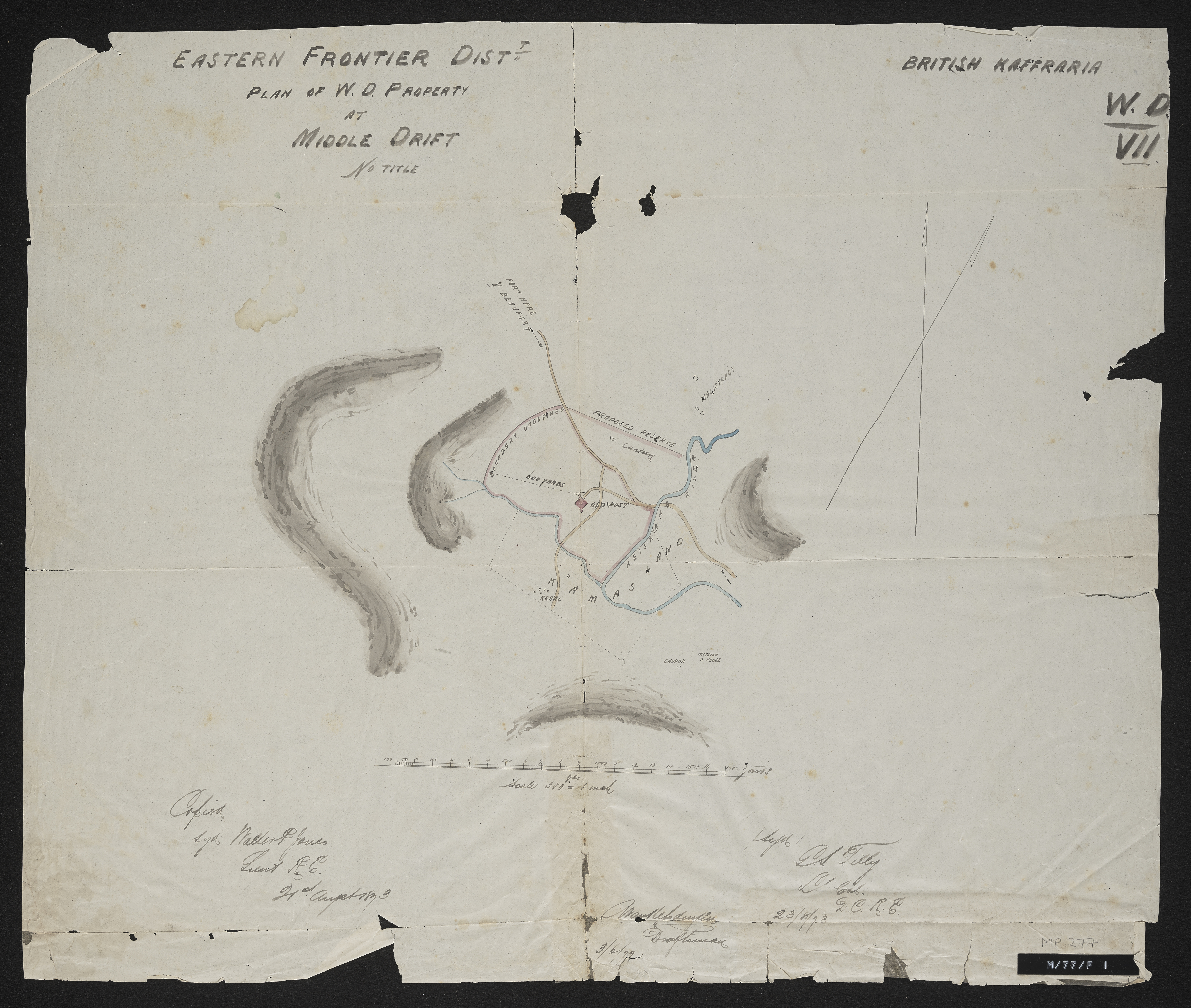 Great Britain. War Office,Jones, Walter P, “Eastern Frontier Dist. plan of W.D. property at Middle Drift,Eastern Frontier District plan of War Department property at Middle Drift”, Great Britain. War Office, Cory Library and Historical Archives, accessed 28 December 2025, https://digitalarchives.ru.ac.za/s/cory/item/10859
