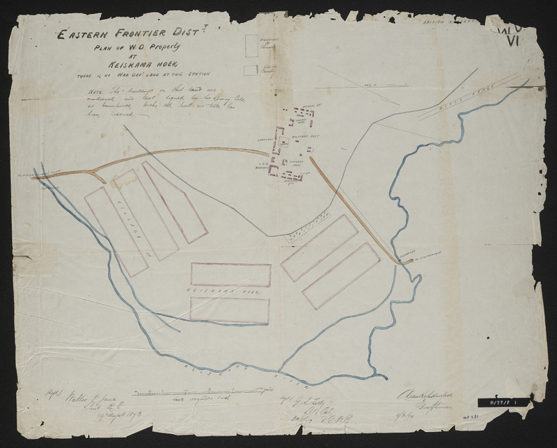 Great Britain. War Office,Jones, Walter P, “Eastern Frontier Dist. plan of W.D. property at Keiskamma Hoek,Eastern Frontier District plan of War Department property at Keiskamma Hoek”, Great Britain. War Office, Cory Library and Historical Archives, accessed 28 December 2025, https://digitalarchives.ru.ac.za/s/cory/item/10865