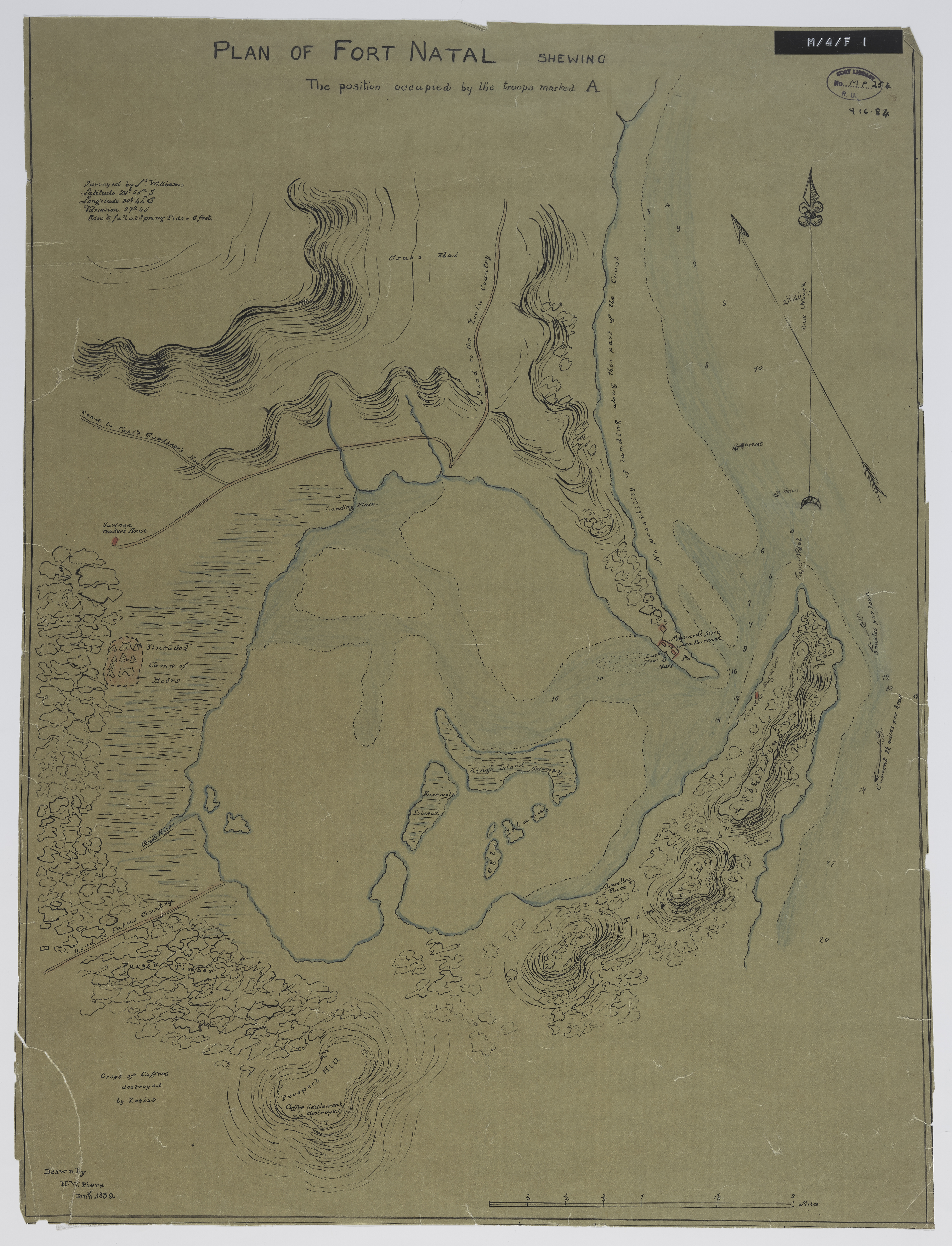 Piers, H W, “Plan of Fort Natal : shewing the position occupied by the troops marked A”, Cory Library and Historical Archives, accessed 29 December 2025, https://digitalarchives.ru.ac.za/s/cory/item/10875