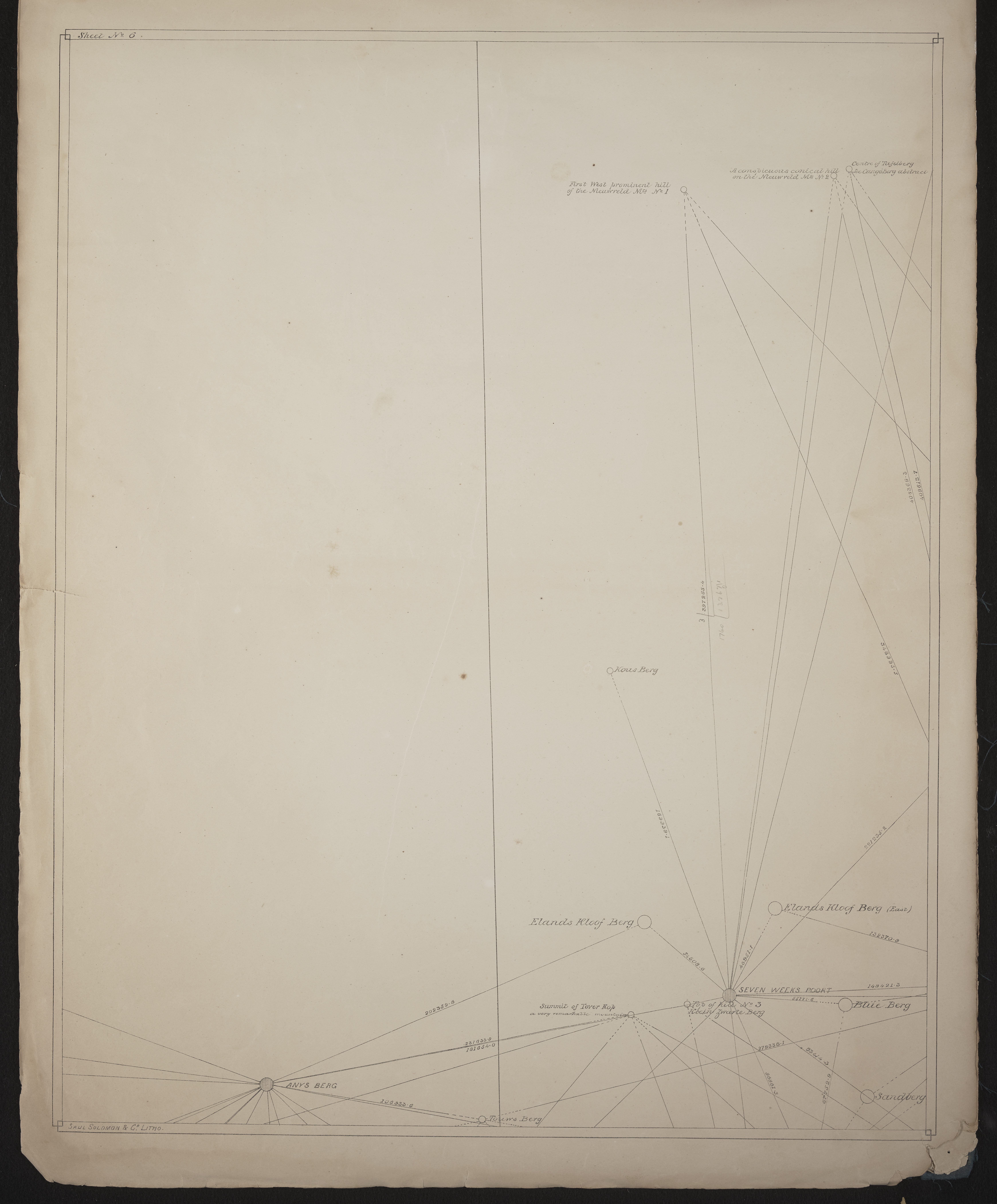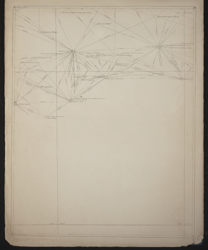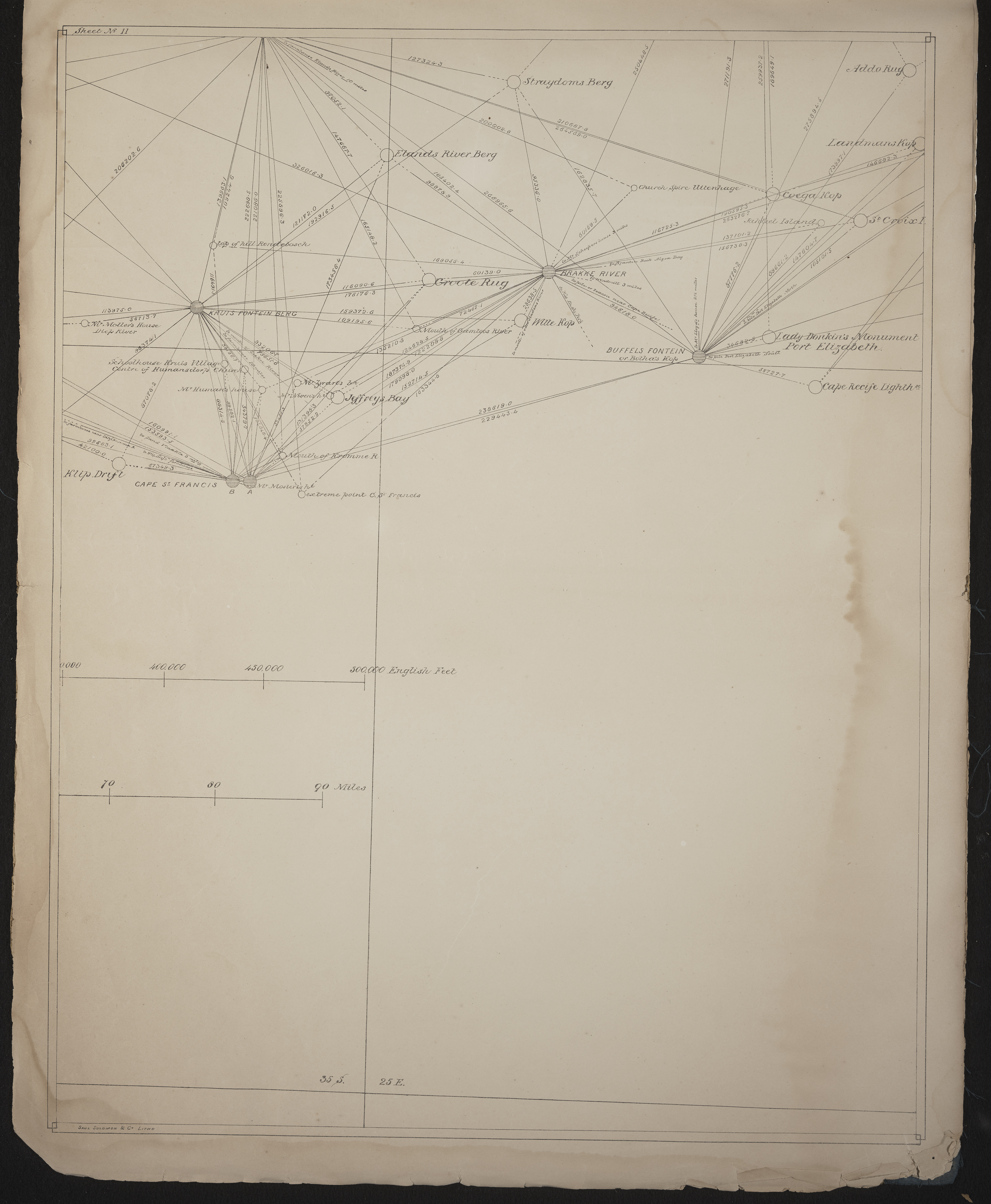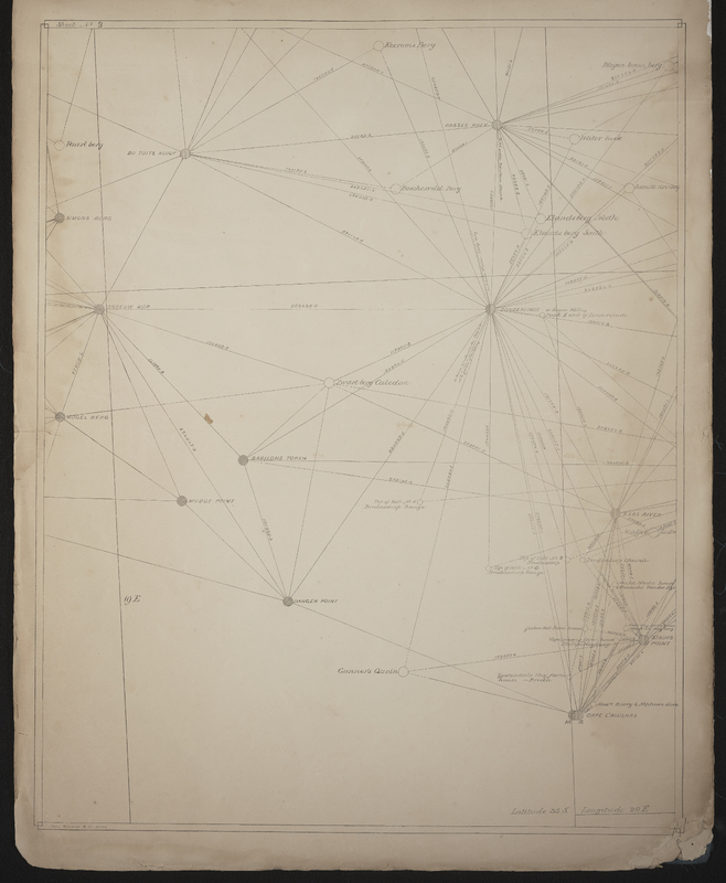 - General plan of the triangulation of the southern part of the Cape Colony 1859.1862. W. Bailey, Captain Royal Engineers, Superintendant Trigonometrical Survey, 21 January 1863. A rough diagram has been constructed for the purpose of shewing the relative positions of the beacons erected and permanent objects observed in the course of the Triangulation and its connection with the stations of Sir T MacLear in the measurement of an arc of meridian. The diagram is tolerably accurate.
