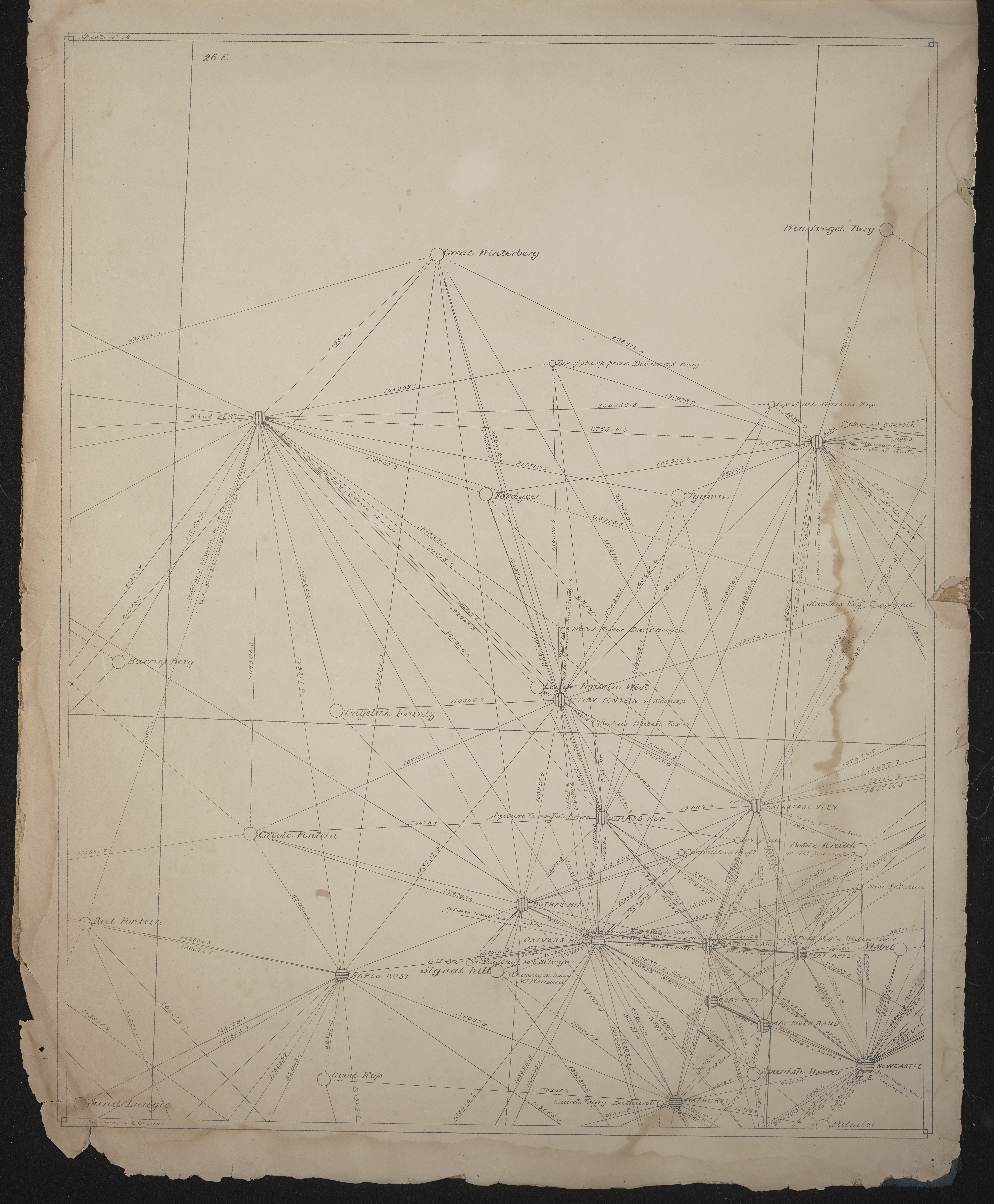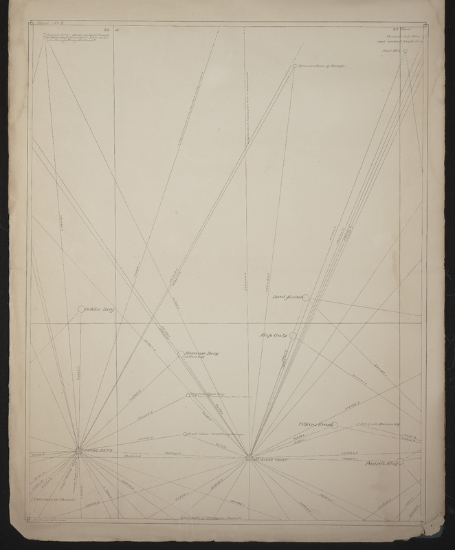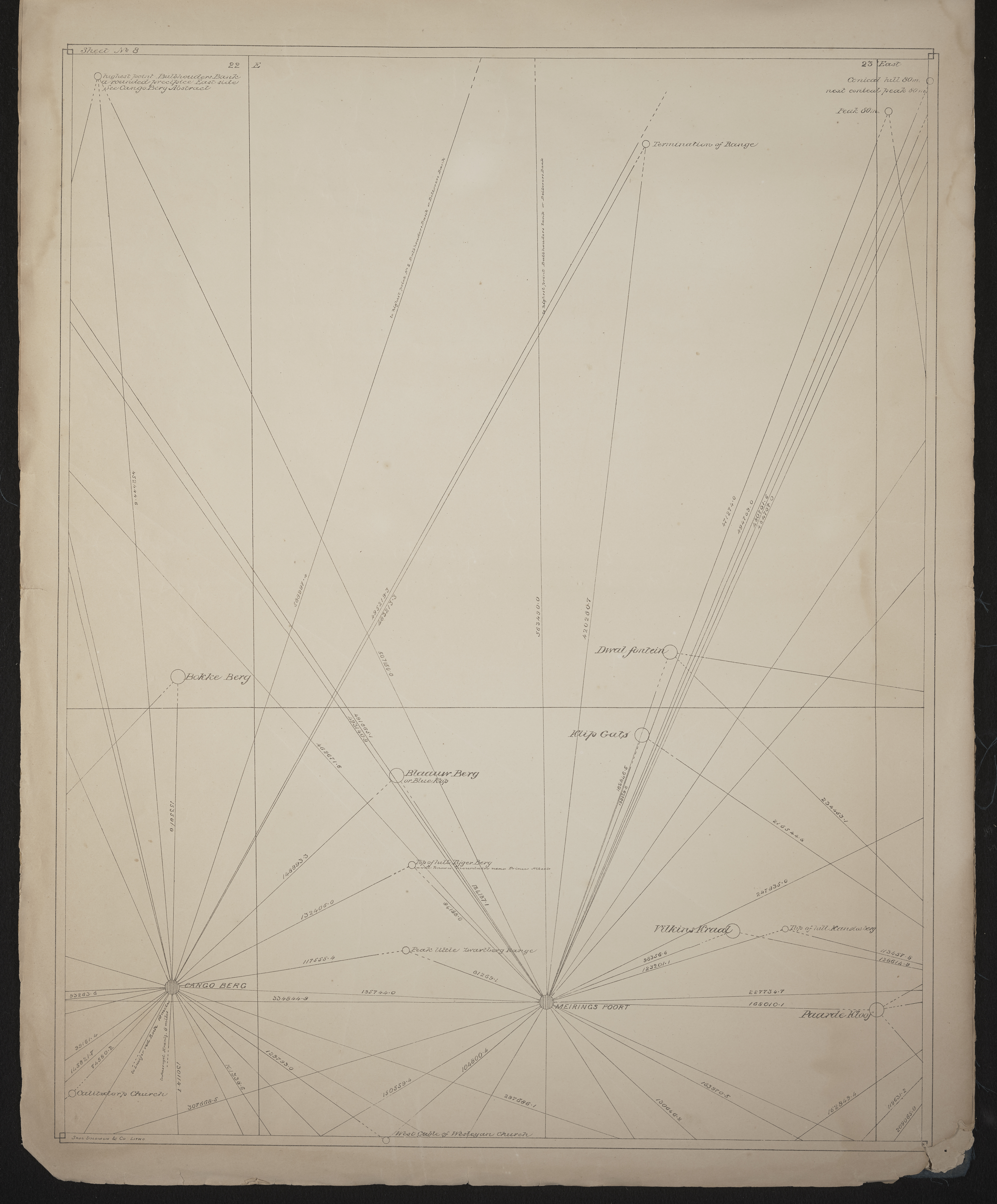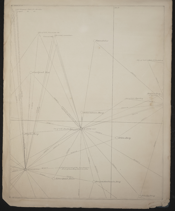 - General plan of the triangulation of the southern part of the Cape Colony 1859.1862. W. Bailey, Captain Royal Engineers, Superintendant Trigonometrical Survey, 21 January 1863. A rough diagram has been constructed for the purpose of shewing the relative positions of the beacons erected and permanent objects observed in the course of the Triangulation and its connection with the stations of Sir T MacLear in the measurement of an arc of meridian. The diagram is tolerably accurate.