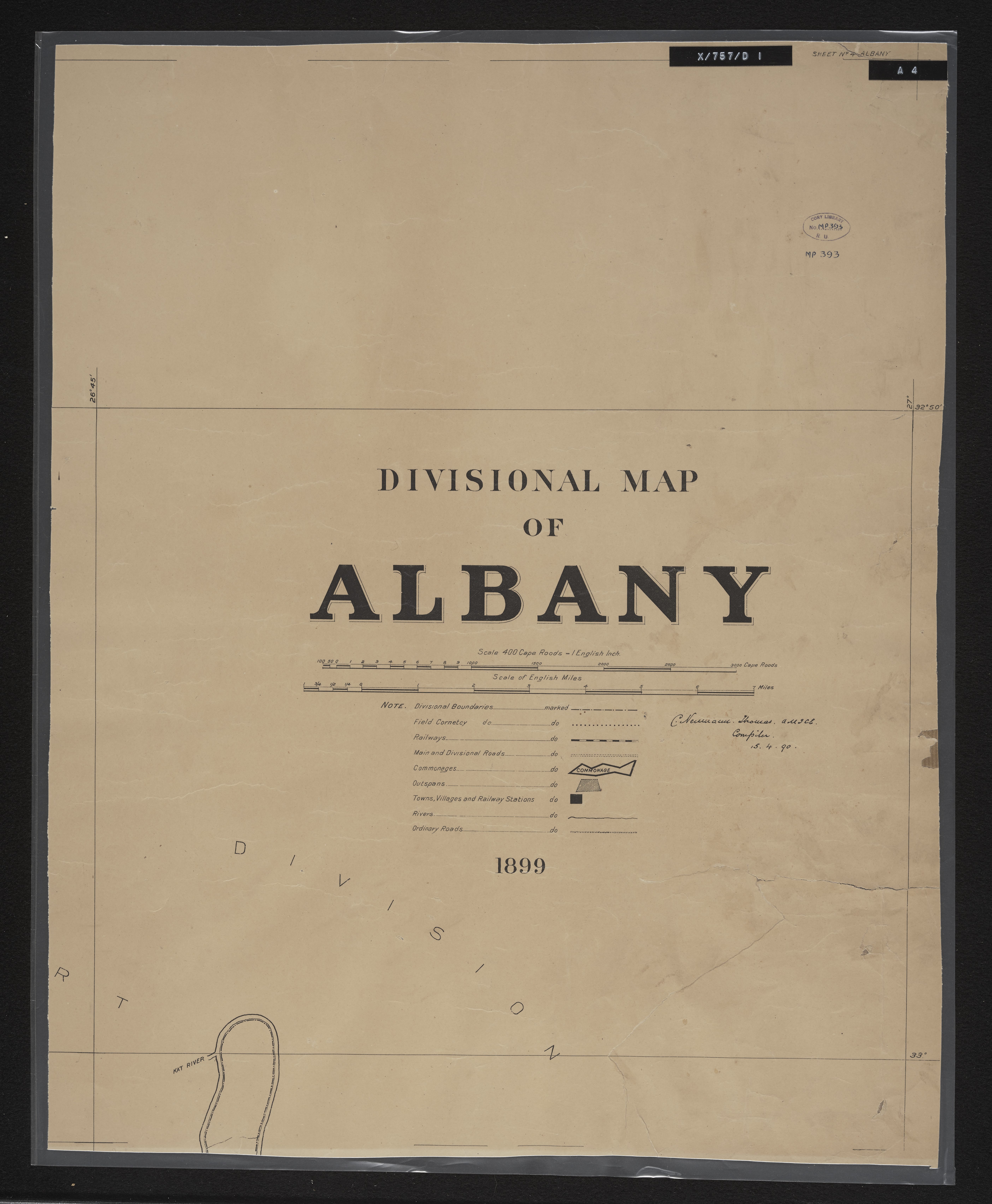Thomas, Charles Neumann, 1840-1923, “Divisional map of Albany”, Surveyor General's Office, Cory Library and Historical Archives, accessed 28 December 2025, https://digitalarchives.ru.ac.za/s/cory/item/10892