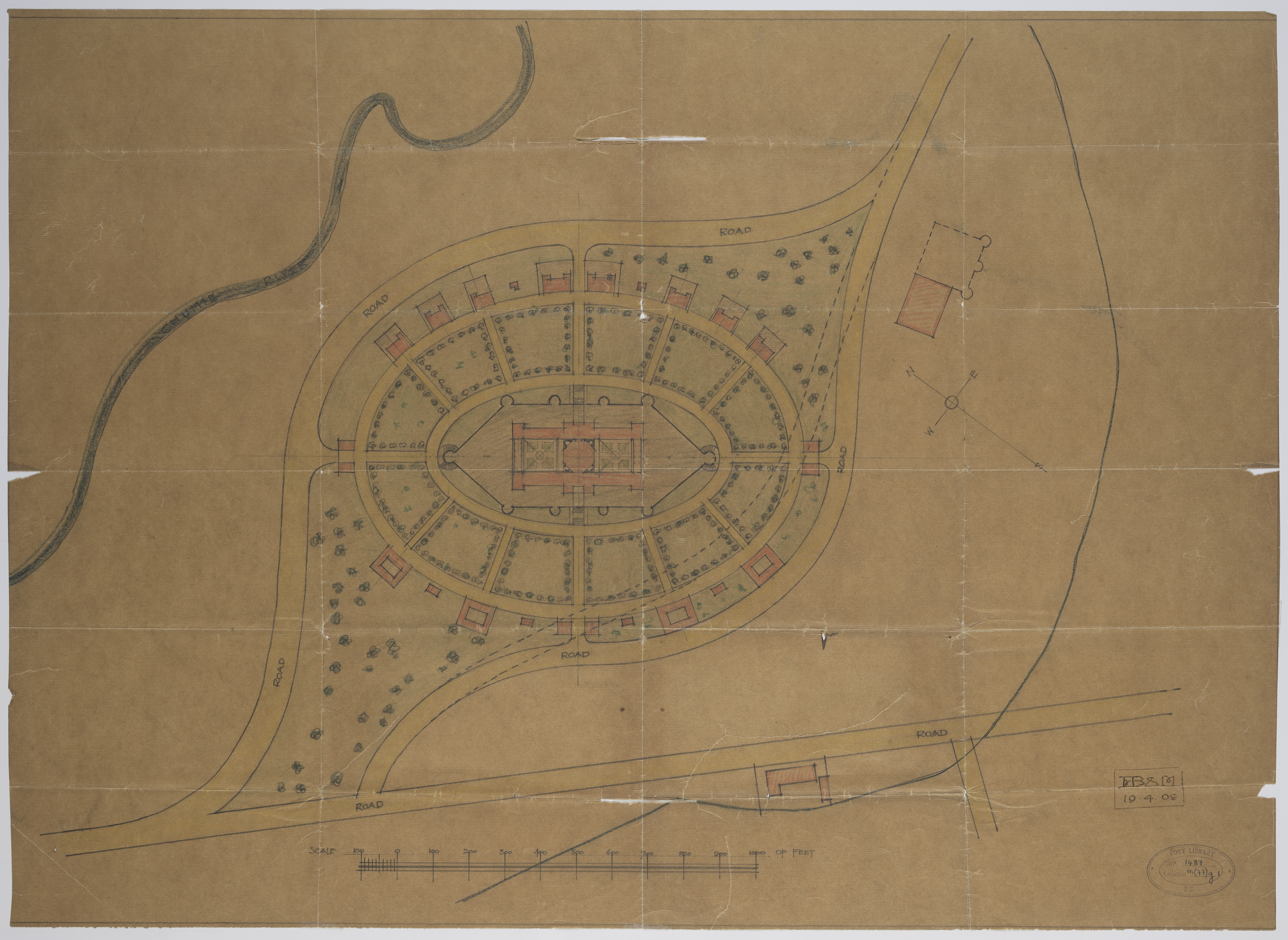 Plan of proposed buildings for the Inter State Native College (later Fort Hare University)