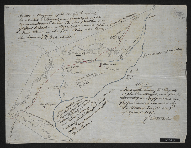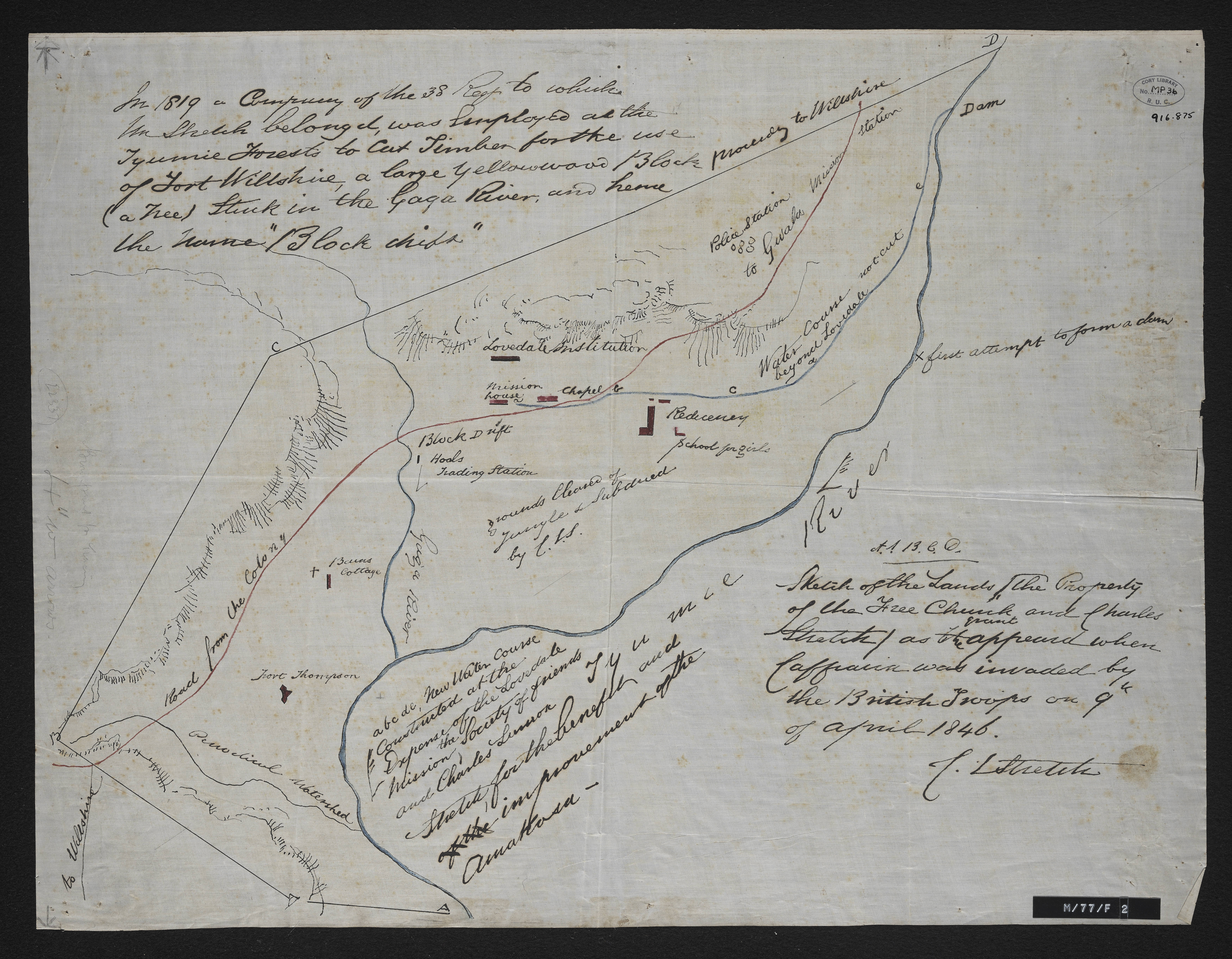 - Sketch of the lands, the property of the Free Church and Charles Stretch as the grant appeared when Caffraria was invaded by the British troops on 9th of April 1846; [drawn by] C.L. Stretch.