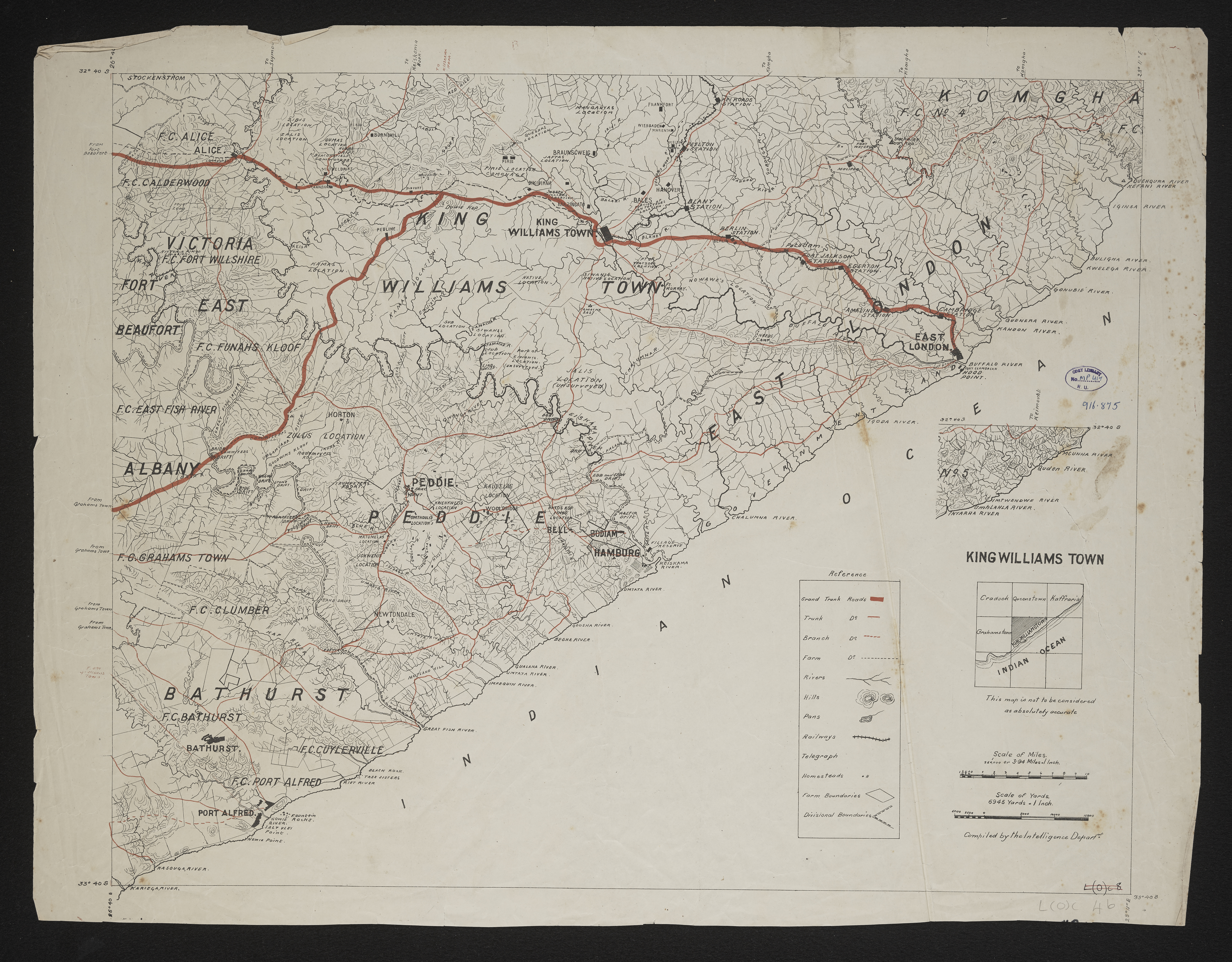 Great Britain. War Office. Intelligence Division, “King William's Town,cartographic”, Great Britain. War Office. Intelligence Division, Cory Library and Historical Archives, accessed 28 December 2025, https://digitalarchives.ru.ac.za/s/cory/item/10963