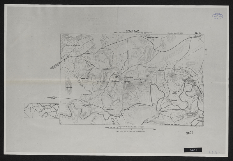 Trigonometrical Survey (South Africa), “Spion Kop : area of operations Jan 17th to 26th 1900”, Great Britain. Ordnance Survey, Cory Library and Historical Archives, accessed 29 December 2025, https://digitalarchives.ru.ac.za/s/cory/item/10965