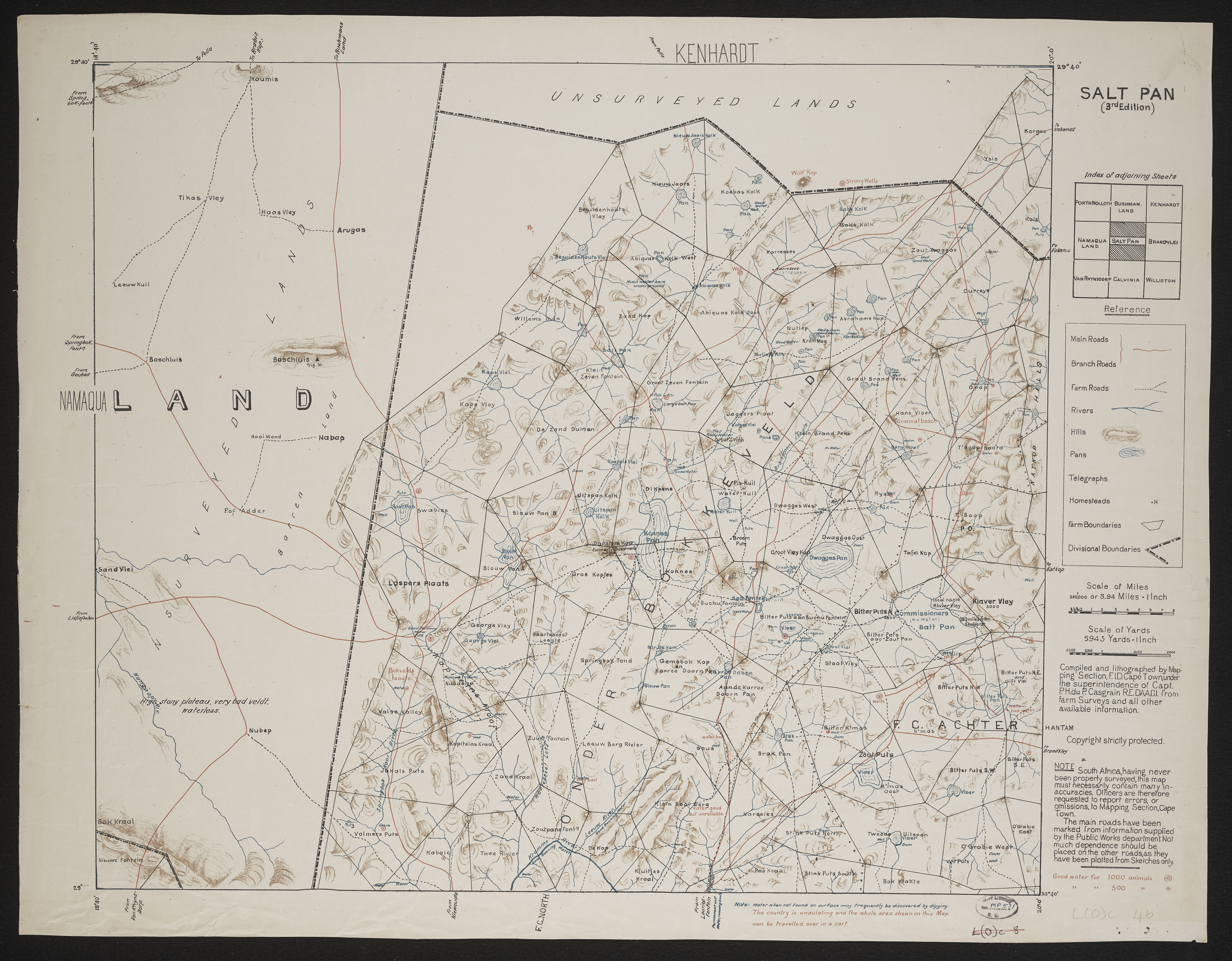 - [Imperial map of South Africa] : Salt Pan compiled and lithographed by Mapping Section F.I.D. Cape Town under the superintendance of Capt. P.H. Du P. Casgrain ... from farm surveys and all other available information, [Wood and Ortlepp] [1900] 3rd edition.