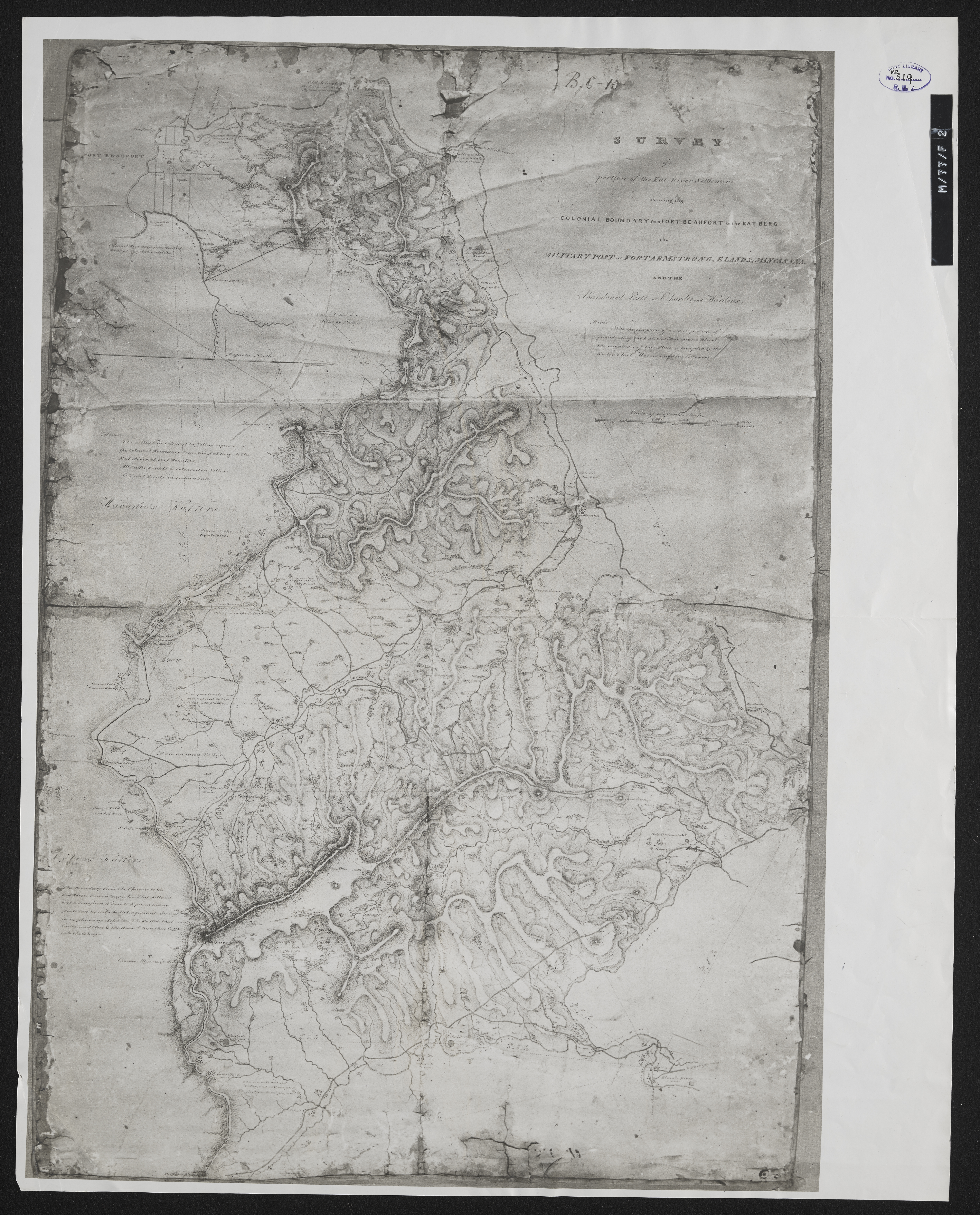- Survey of a portion of the Kat River Settlement shewing the colonial boundary from Fort Beaufort to the Kat Berg, the military post at Fort Armstrong, Elands [Post], Mancasana and the abandoned posts at Echardts and Warden's. Photograph of original.