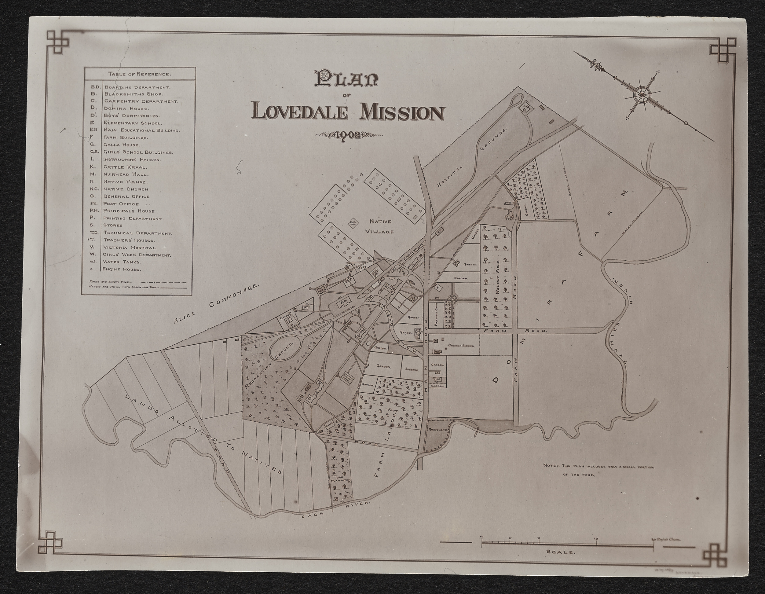 “Lovedale,Plan of Lovedale mission 1902,South Africa 1:50000 sheet”, Cory Library and Historical Archives, accessed 28 December 2025, https://digitalarchives.ru.ac.za/s/cory/item/10995