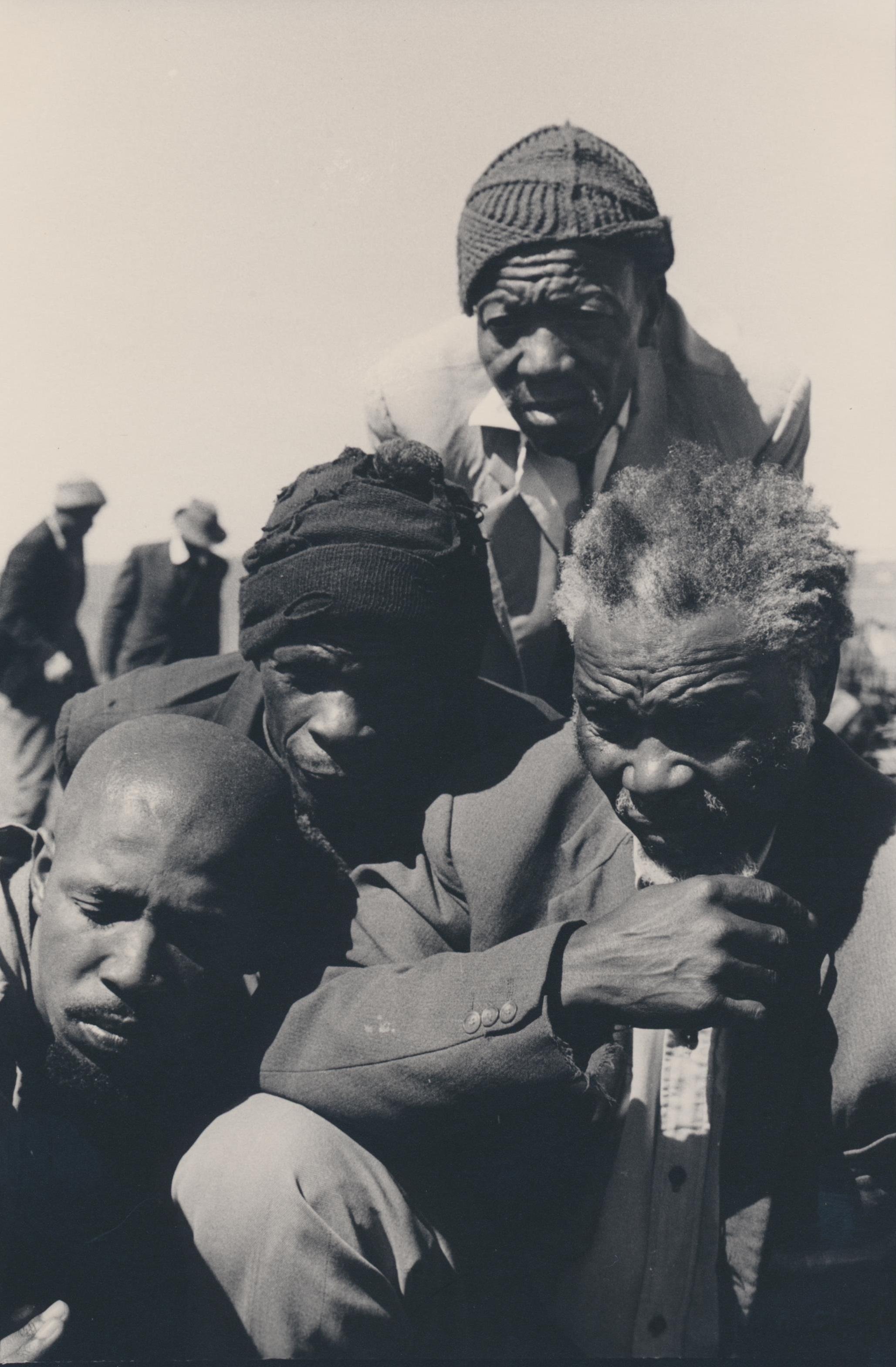- A series of photographs showing views of forced removal of communities from Klipfontein farm, near Kenton-on-sea, and other areas, to Glenmore in 1979. These photographs were accumulated by Ben Maclennan when he worked as a journalist for Eastern Province Herald, covering the move, and when he wrote the book "Glenmore : the story of a forced romoval" The photograph shows four men at Klipfontein, during the move to Glenmore, April 1979