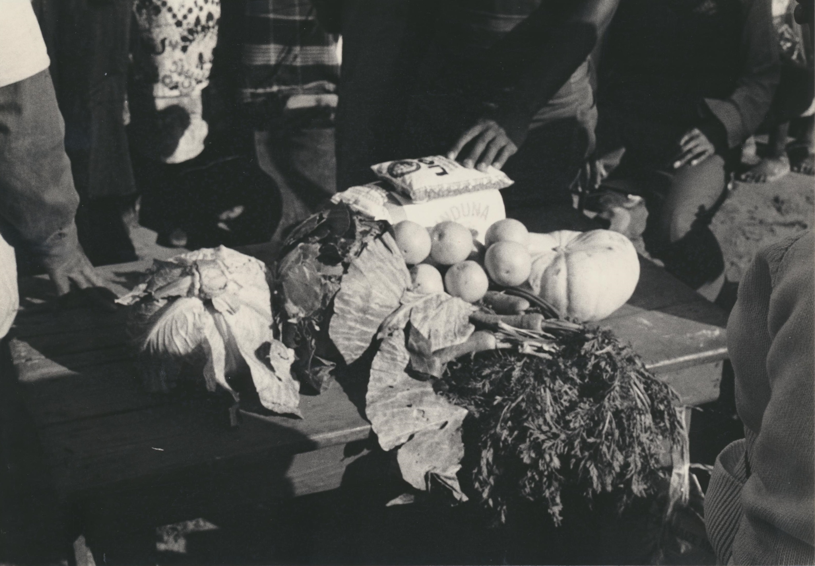 - A series of photographs showing views of forced removal of communities from Klipfontein farm, near Kenton-on-sea, and other areas, to Glenmore in 1979. These photographs were accumulated by Ben Maclennan when he worked as a journalist for Eastern Province Herald, covering the move, and when he wrote the book "Glenmore : the story of a forced removal. This photograph showing one lot of food rations for one family. During forced removals from Kliptown to Glenmore, tons of food supplies were donated by World Vision of Southern Africa, a Johannesburg based Christian humanitarian organisation as a means of bringing relief to of all unemployed people in Glenmore.