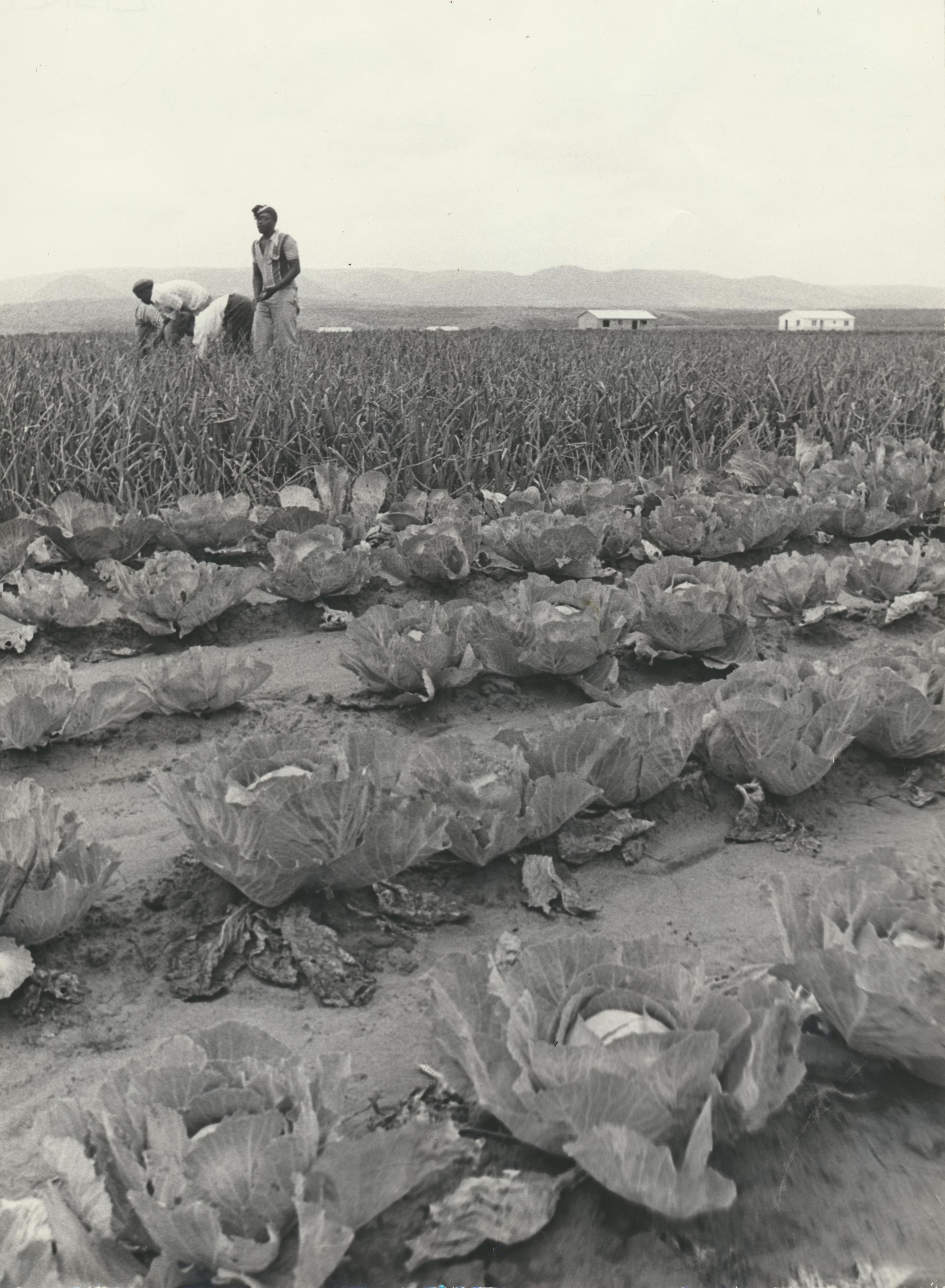 - A series of photographs showing views of forced removal of communities from Klipfontein farm, near Kenton-on-sea, and other areas, to Glenmore in 1979. These photographs were accumulated by Ben Maclennan when he worked as a journalist for Eastern Province Herald, covering the move, and when he wrote the book "Glenmore : the story of a forced removal. This photograph showing cabbages and onions grown by one of the 12 commercial farmers at Tyefu. Tyefu Agricultural Scheme was a showpiece agricultural scheme run by the Ciskei administration in the impoverished tribal land south of Glenmore. Begun in November 1976, it was open to only a small number of selected farmers, all of whom had already been allocated plots