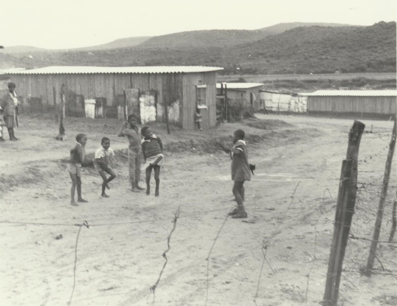 - A series of photographs taken at the time of the Klipfontein evictions, the resultant trial at the Supreme Court Grahamstown, and the eventual settlement of those evicted in the Glenmore resettlement location, showing some of the residents involved, officials, members of the press, as well as aerial and on site views of Glenmore. Photographers: Dave Forbes, Ben Maclennan, Evert Smith, and an unknown photographer. This photograph shows children in Glenmore, playing outside their houses.