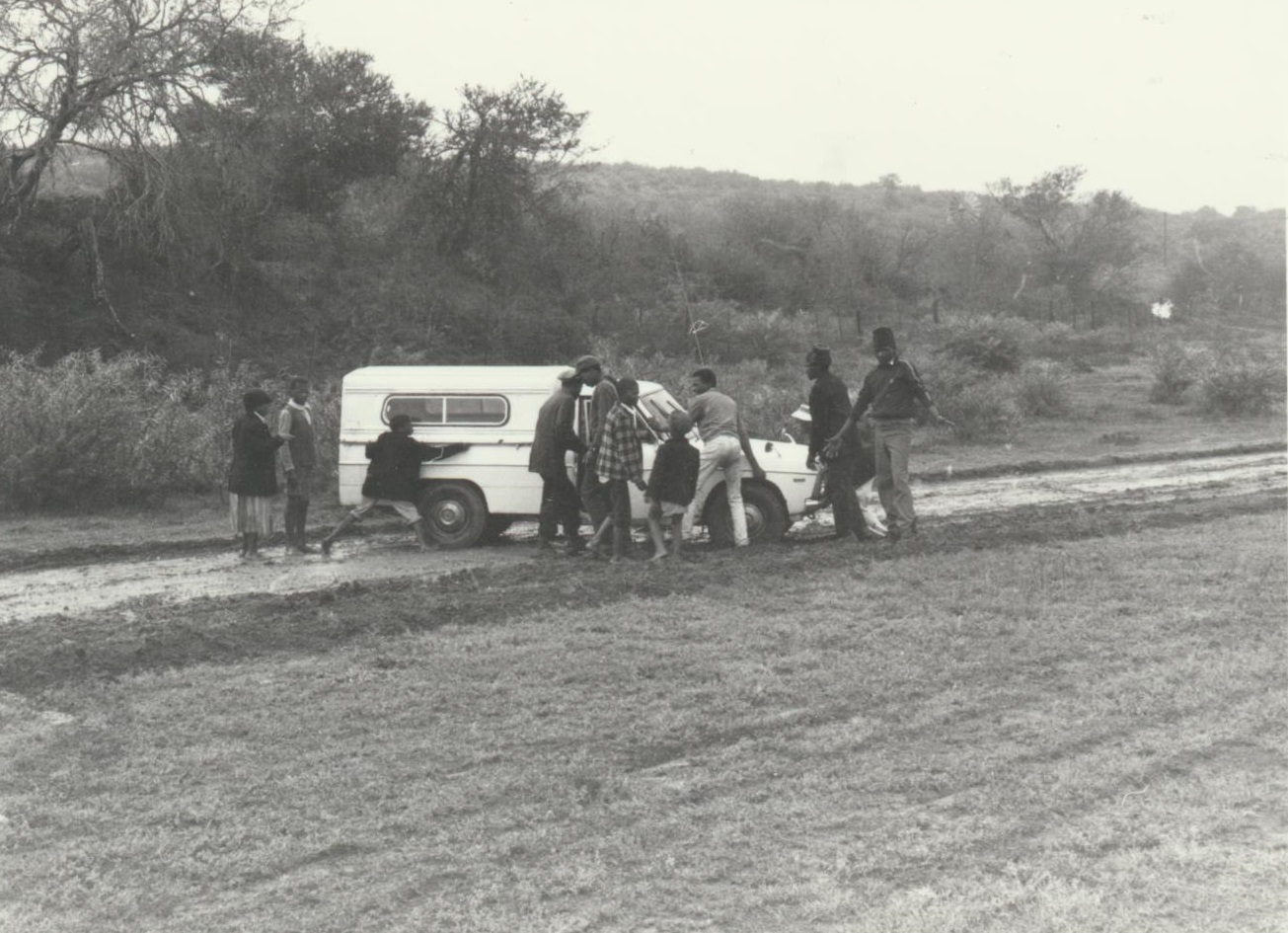 “Glenmore people pushing against a white van stuck in the mud”, Cory Library and Historical Archives, accessed 28 December 2025, https://digitalarchives.ru.ac.za/s/cory/item/11333