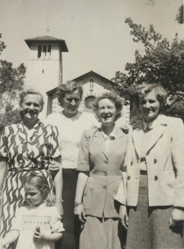 - Photograph of a group of people at a Grahamstown Teachers' Training College reunion in front of the Rhodes University Chapel of St Mary and all the Angels (circa 1954)