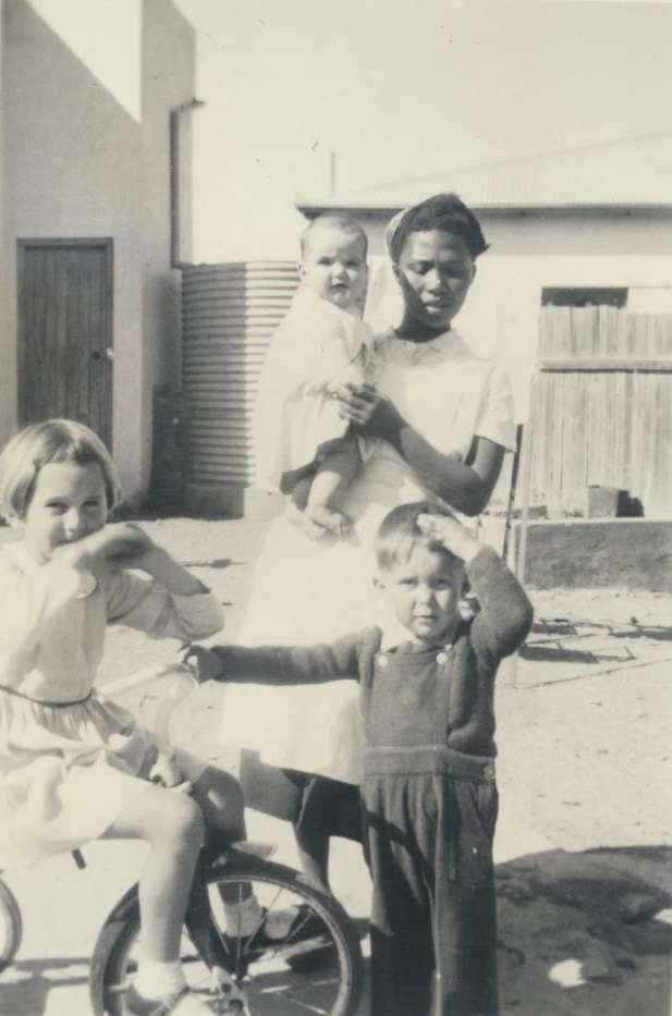 - Photograph of Joan, Pierre and Linette Jordaan (Travers-Jackson) with an unidentified African woman