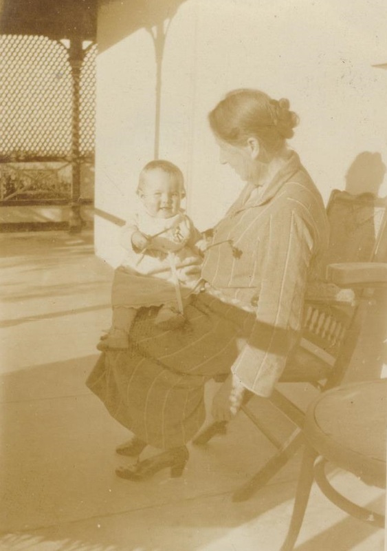 - Photograph of Margaret (the woman in the photograph (presumably Margaret) is sitting on a bench with a baby on her lap