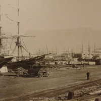 - A photograph showing views of the docks and a slight view of Table Mountain in background, Cape Town, 1891. The photograph was probably taken by someone who did a tour of Cape Town in 1891. Inscription: "To dear Ethel, from Joe, Xmas 1891"