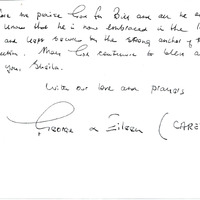 Condolence letter to Sheila Burnett from George and Eileen Carey, page 2