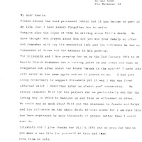 - Letter of condolences, addressed to Sheila Burnett on the death of her husband Bill Bendyshe Burnett, who died on the 23rd of August 1994.