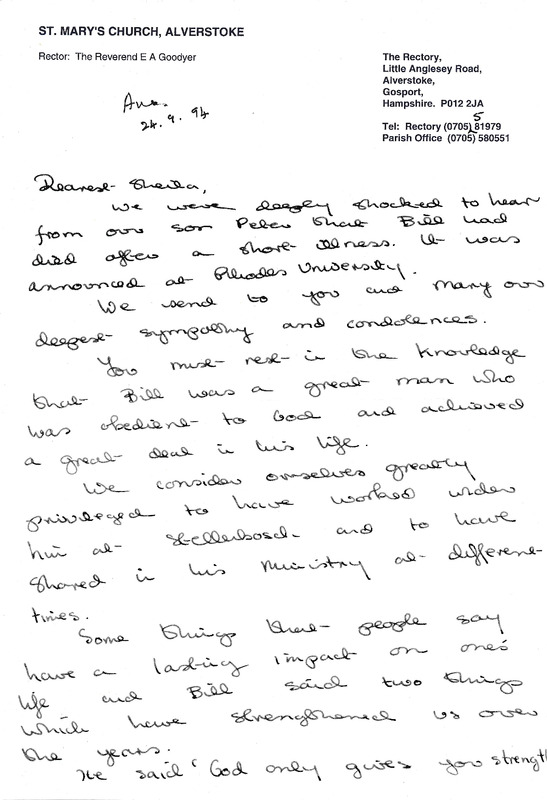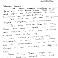 - Letter of condolences, addressed to Sheila Burnett on the death of her husband Bill Bendyshe Burnett, who died on the 23rd of August 1994.