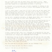 - Letter of condolences, addressed to Sheila Burnett on the death of her husband Bill Bendyshe Burnett, who died on the 23rd of August 1994.