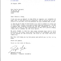 - Letter of condolences, addressed to Sheila Burnett on the death of her husband Bill Bendyshe Burnett, who died on the 23rd of August 1994.