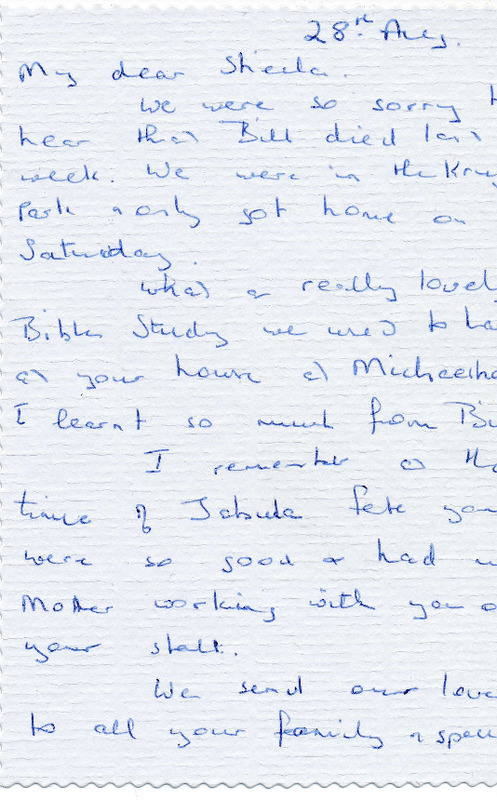 - Letter of condolences, addressed to Sheila Burnett on the death of her husband Bill Bendyshe Burnett, who died on the 23rd of August 1994.