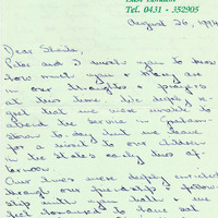 - Letter of condolences, addressed to Sheila Burnett on the death of her husband Bill Bendyshe Burnett, who died on the 23rd of August 1994.