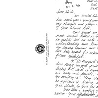 - Letter of condolences, addressed to Sheila Burnett on the death of her husband Bill Bendyshe Burnett, who died on the 23rd of August 1994.