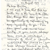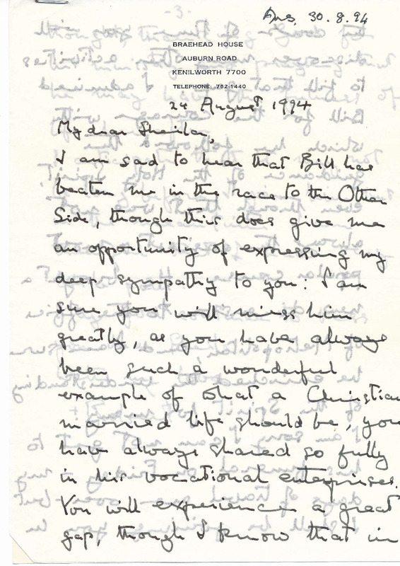 - Letter of condolences, addressed to Sheila Burnett on the death of her husband Bill Bendyshe Burnett, who died on the 23rd of August 1994.