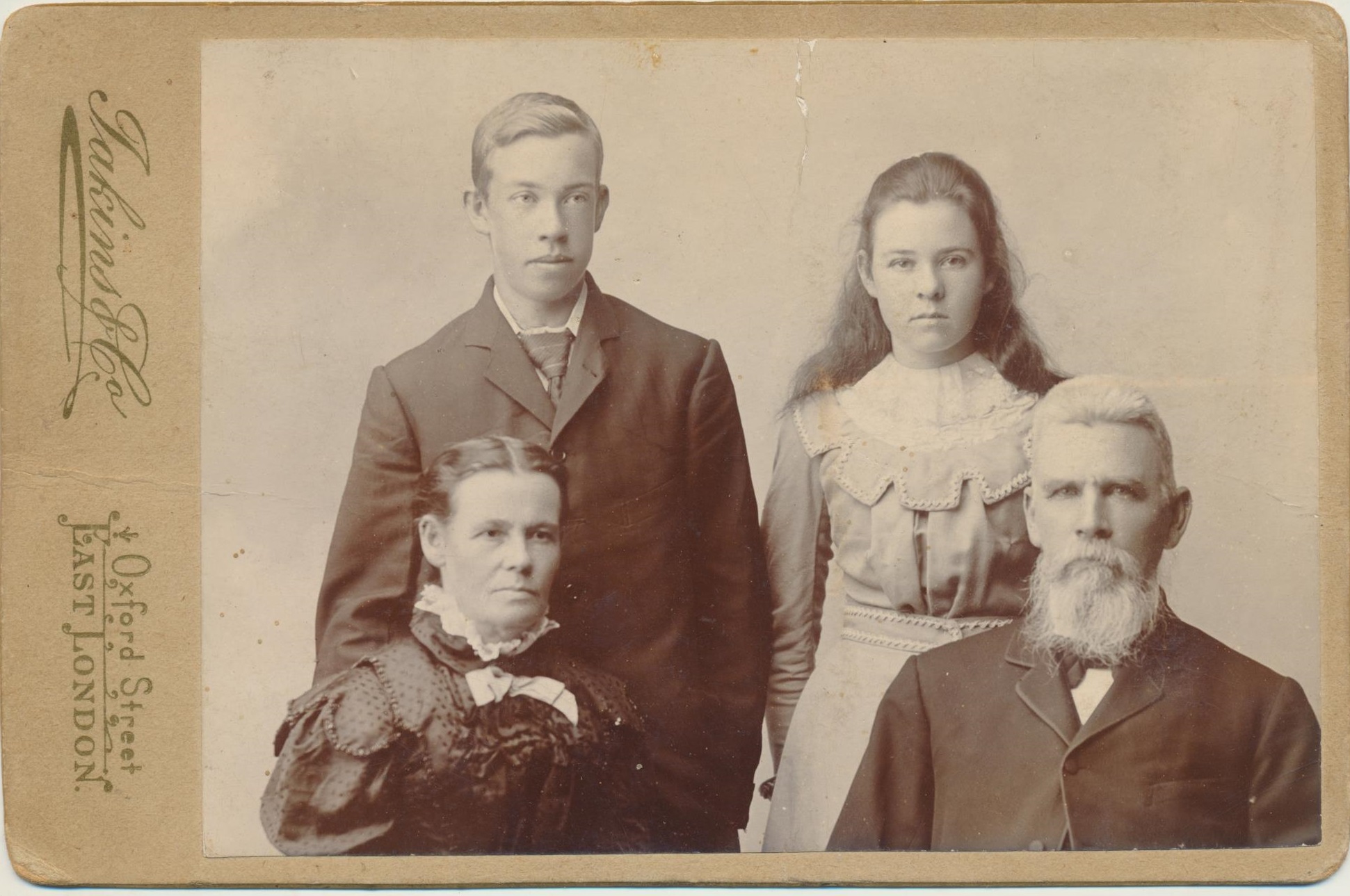 - Photograph of James and Elizabeth Anne Barnes with children Fanny Maria and Rex Barnes. Photograph album : assembled and donated by L.A. Hewson / photographer/s mostly unknown. Donated by L.A. Hewson (Deposit 154)