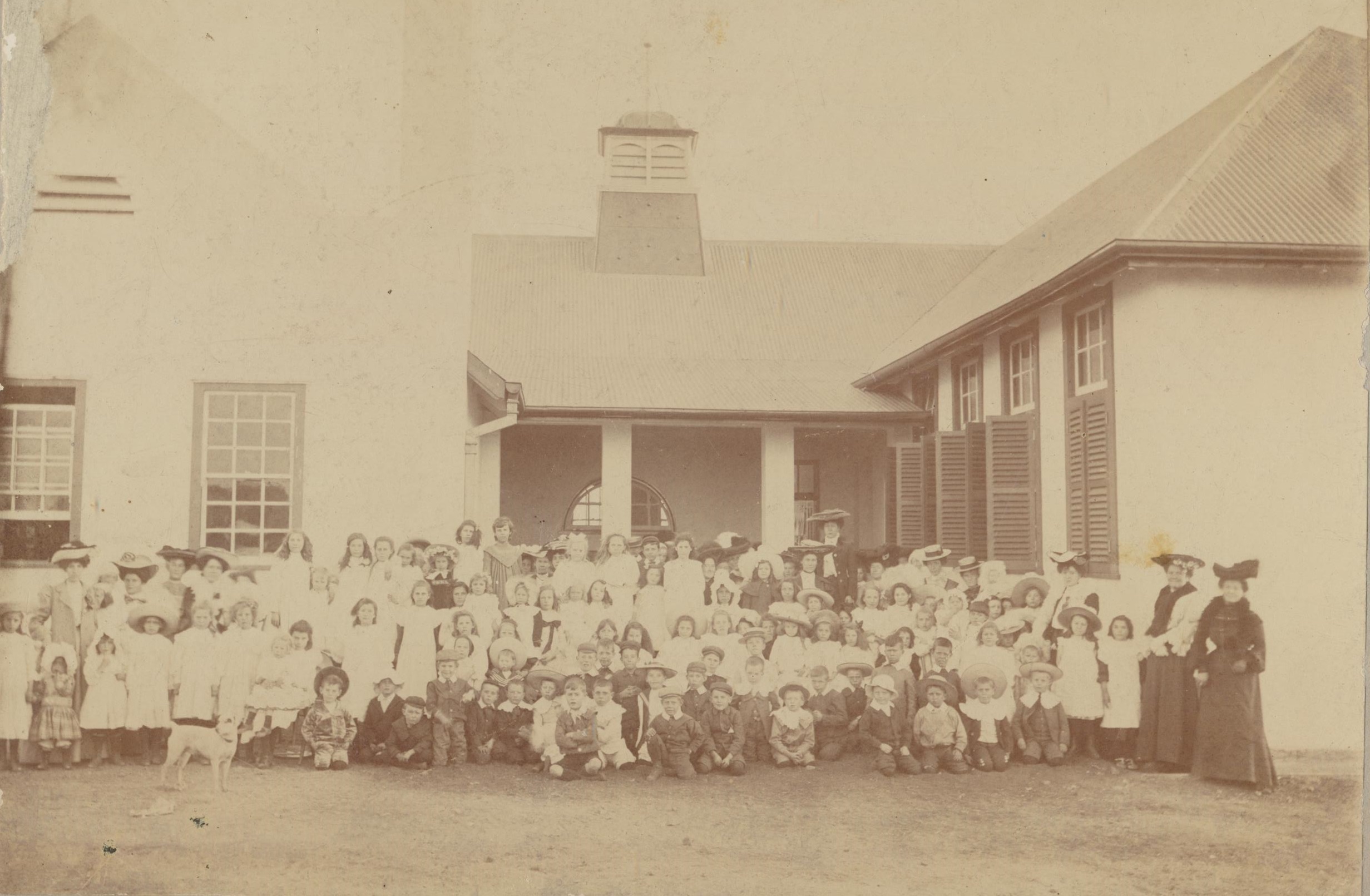 - Photograph album : assembled and donated by L.A. Hewson / photographer/s mostly unknown,Photograph of a large group of Sunday School children in Johannesburg, South Africa.,Donated by L.A. Hewson (Deposit 154)