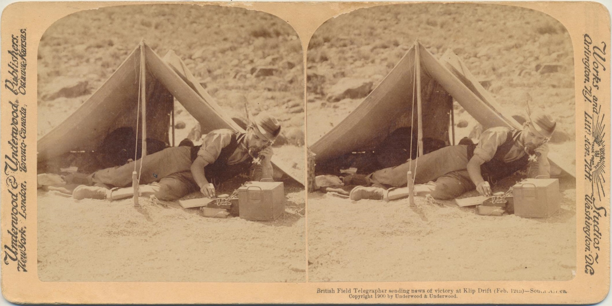 Unattributed, “British field telegrapher sending news of victory at Klip Drift (Feb 12th)”, Cory Library and Historical Archives, accessed 28 December 2025, https://digitalarchives.ru.ac.za/s/cory/item/12717