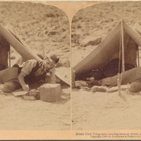 British field telegrapher sending news of victory at Klip Drift (Feb 12th)