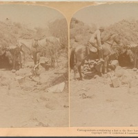 Correspondents scrutinizing a hut in the Boer Laager at Klip Drift