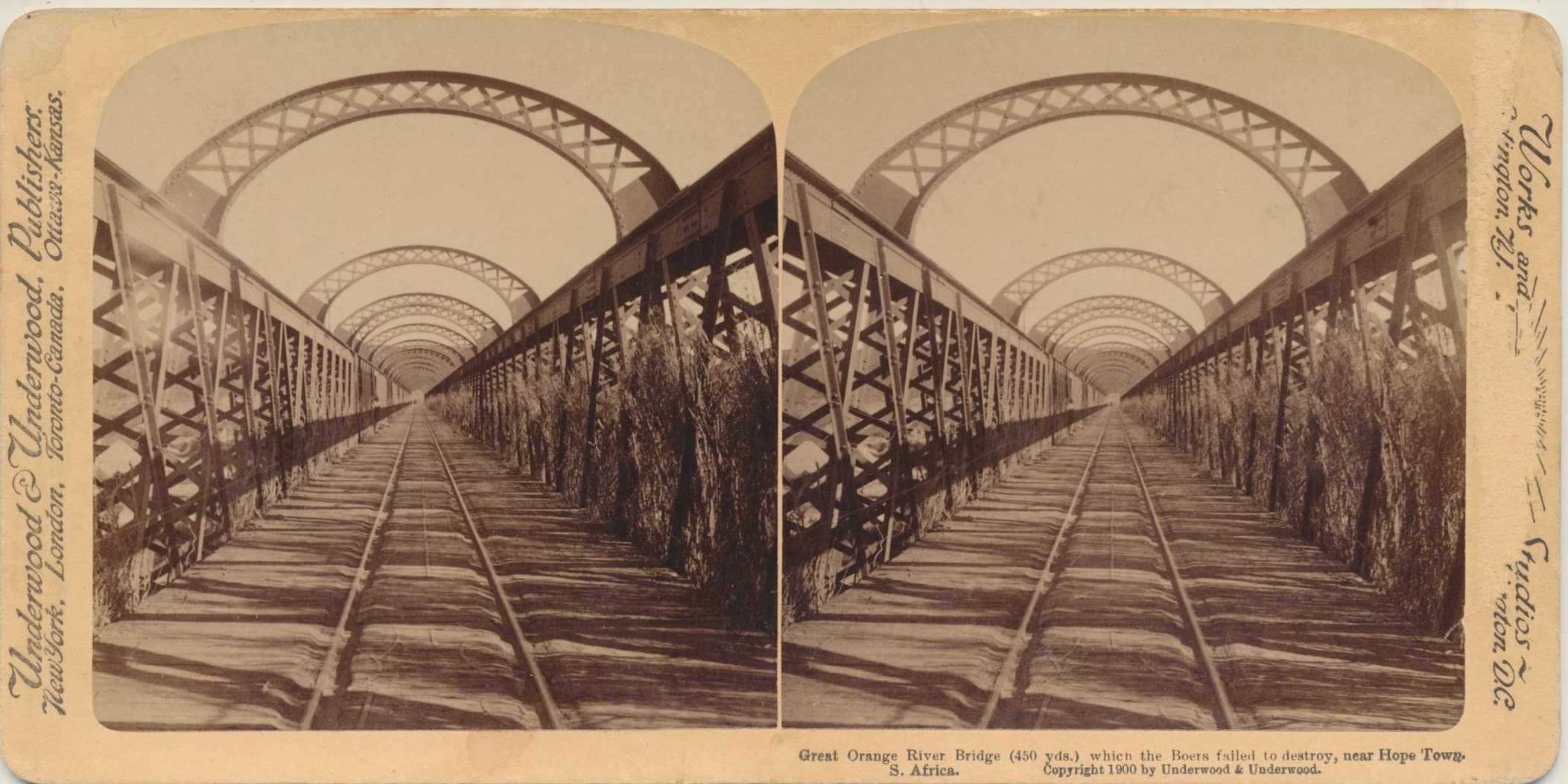 Unattributed, “Great Orange River bridge (450 yds), which the Boers failed to destroy, near Hopetown”, Cory Library and Historical Archives, accessed 28 December 2025, https://digitalarchives.ru.ac.za/s/cory/item/12737